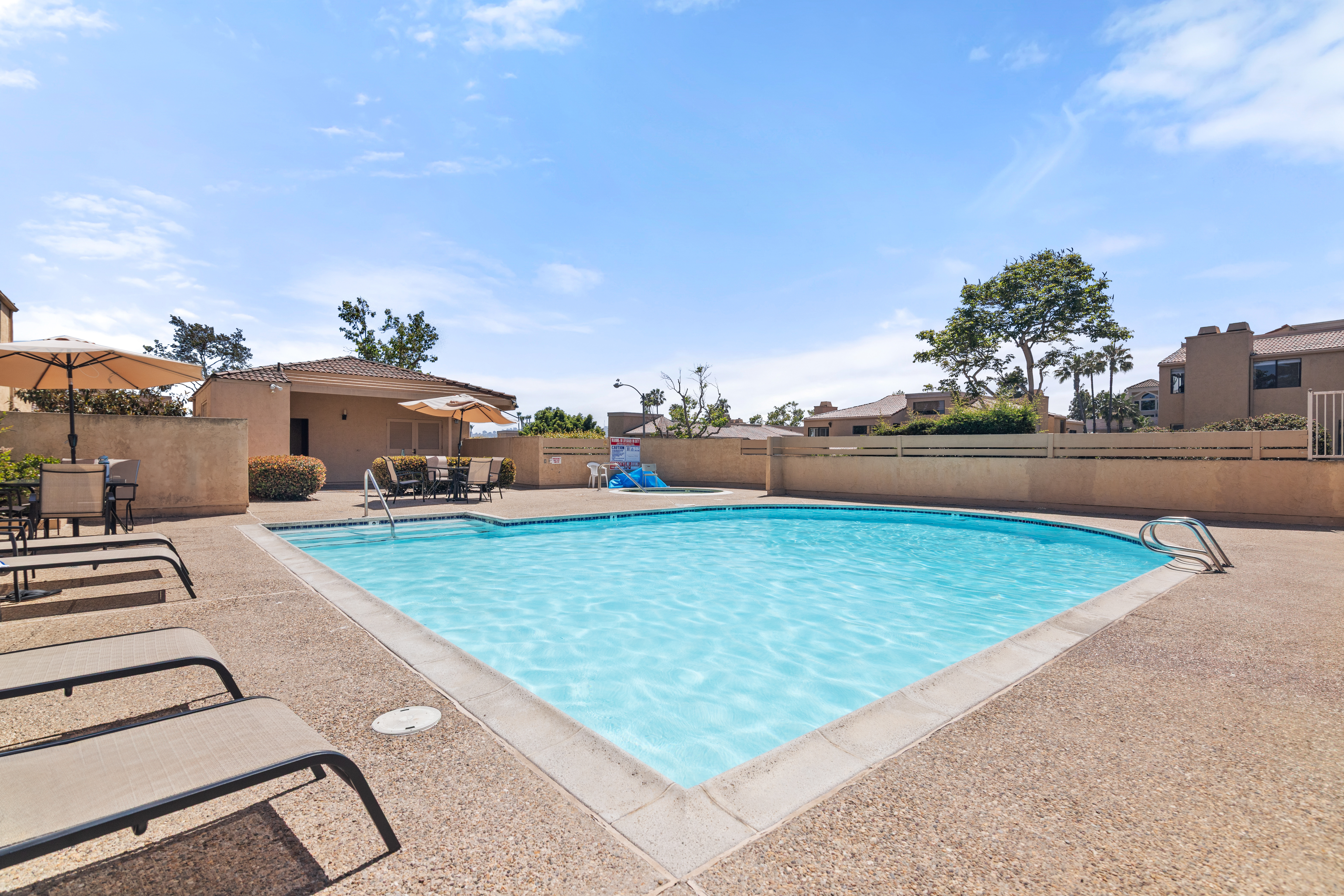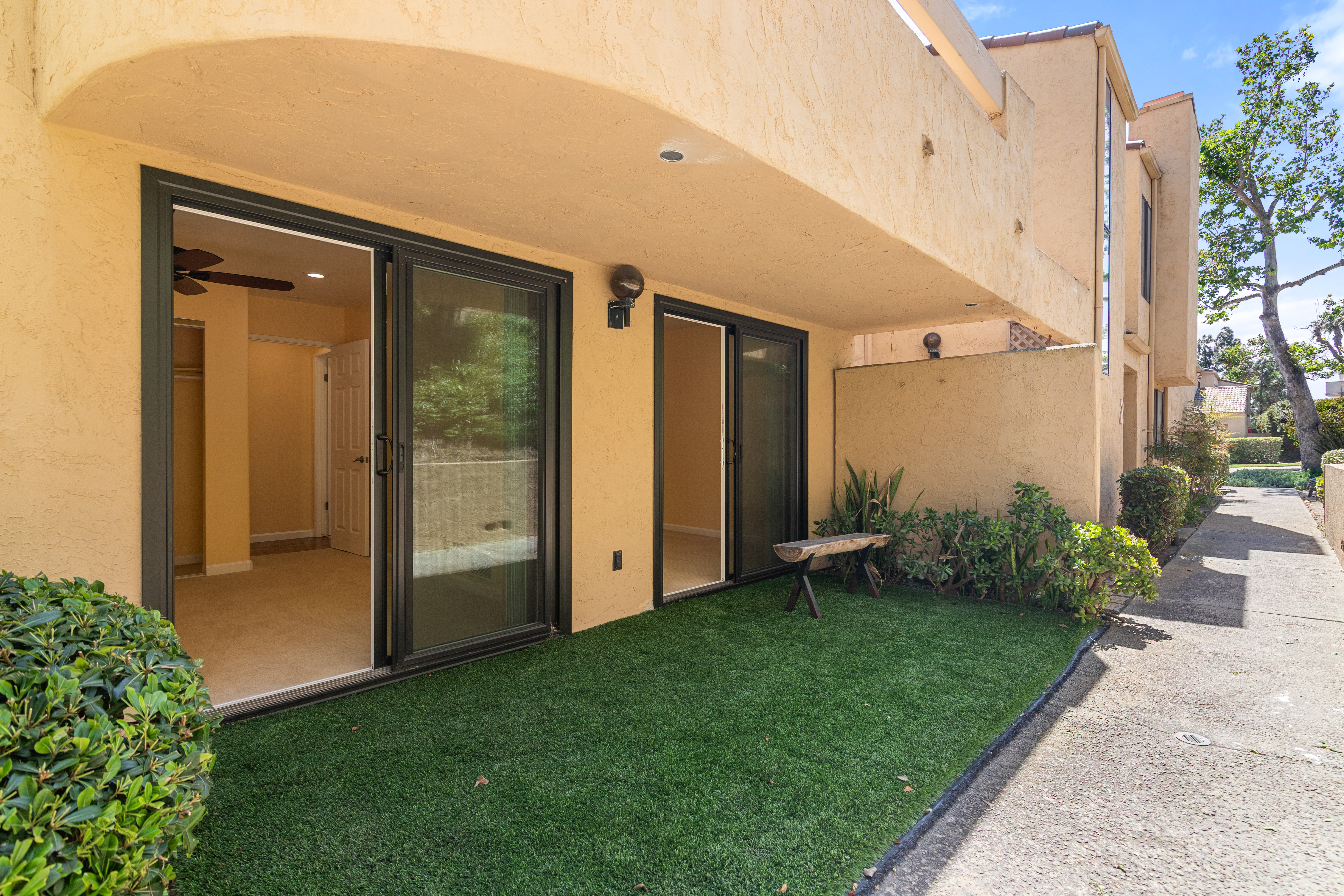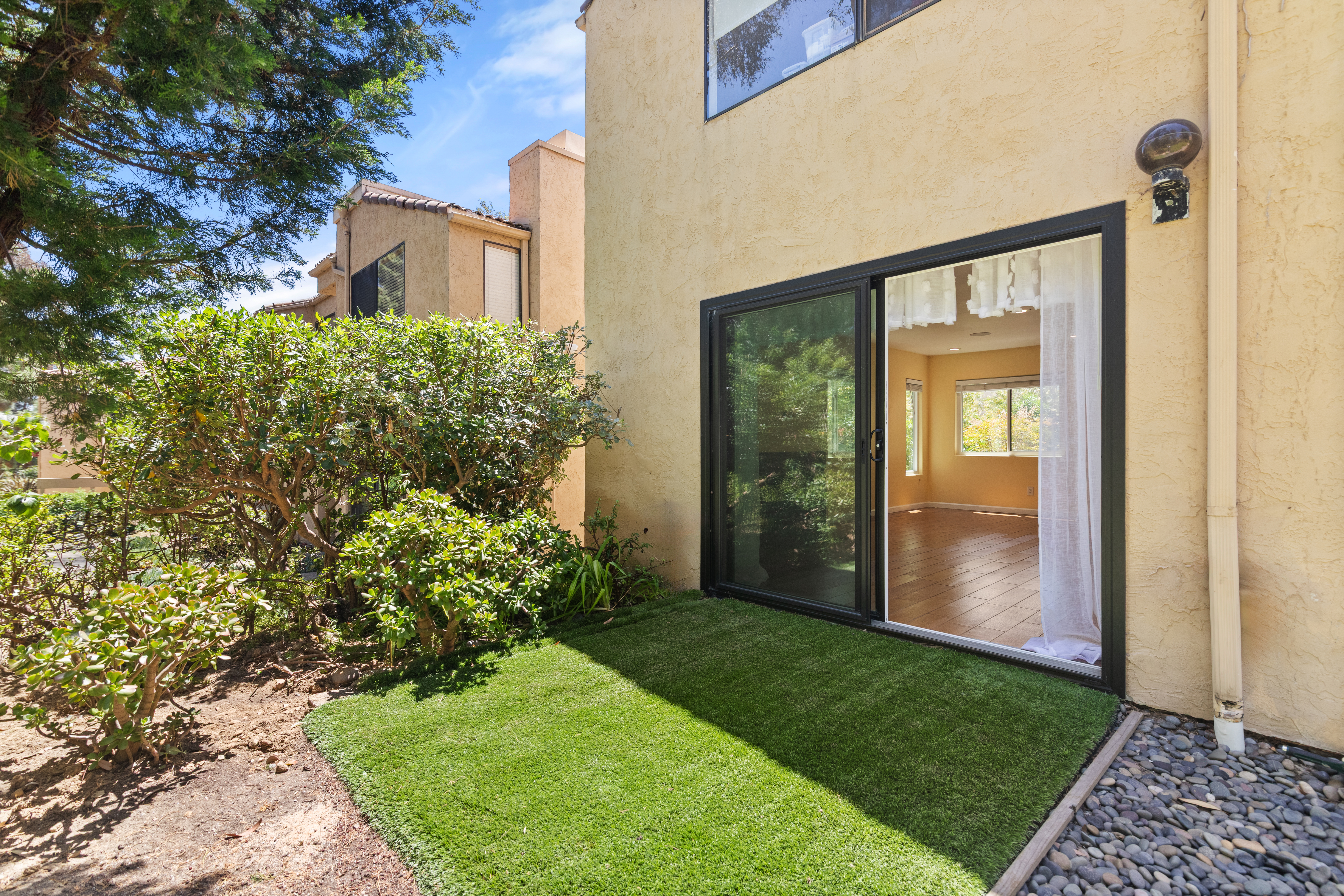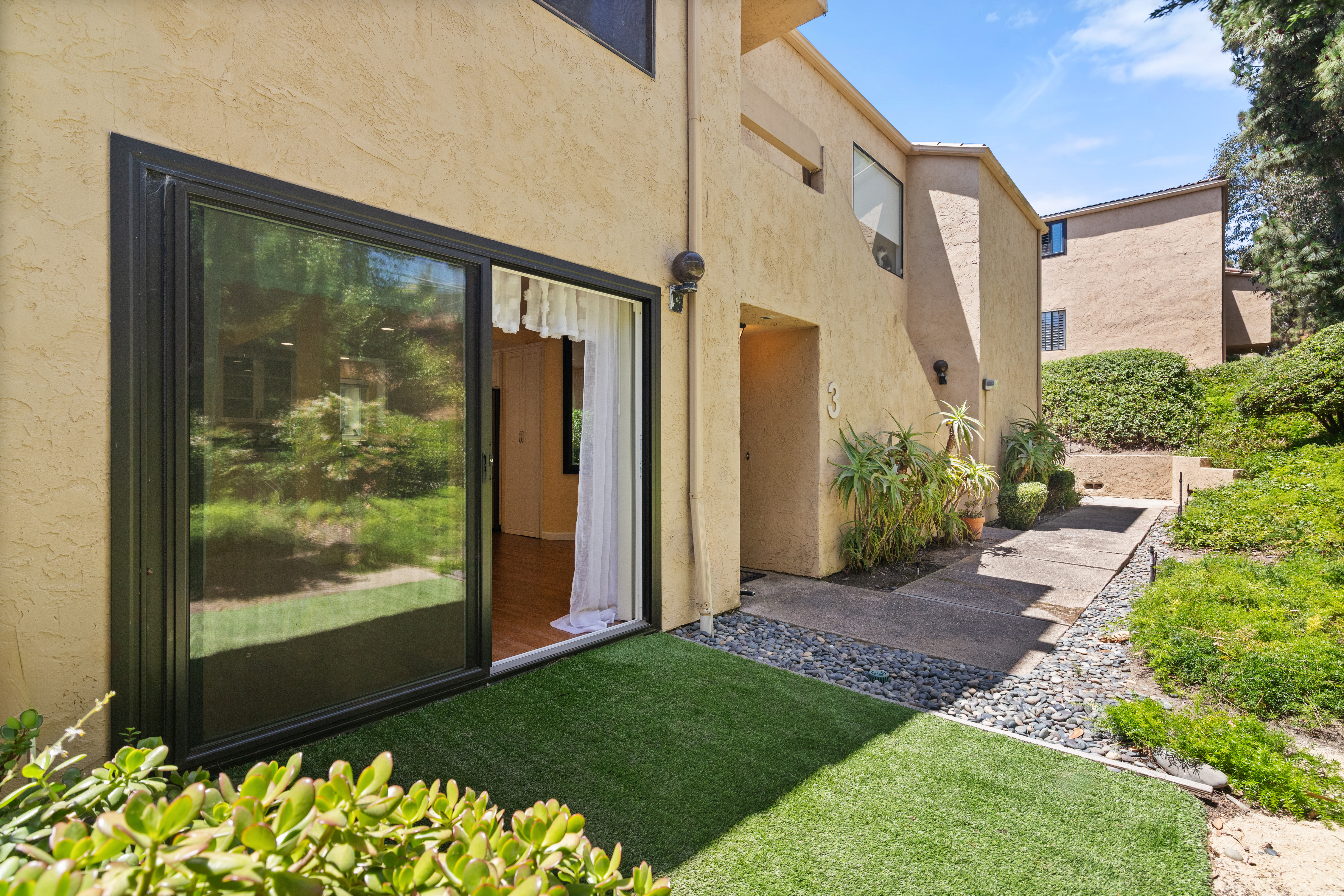 Beautifully Updated One-Level Home in the Rarely Available Dieguenos Community. Renovated top to bottom with new windows and doors, porcelain tile flooring, kitchen, and baths. Tucked away in a lush, private enclave, this home is light, bright, and quiet. The open-concept layout flows effortlessly to tranquil patios off the living room and both bedrooms—ideal for relaxing or entertaining. Two spacious bedrooms, including a primary suite with a full bath, plus a convenient powder room for guests. This smart home is wired for security, surround sound, entertainment and includes an in-unit washer and dryer in the hallway for added ease. Additional features include an attached one-car garage and a dedicated parking space directly in front. Enjoy access to resort-style community amenities such as a pool and spa, all within walking distance to grocery stores, local shops, and scenic parks. This beautifully updated home offers the perfect blend of comfort, style, and convenience in the highly sought-after UTC neighborhood. Don’t miss this rare opportunity to enjoy peaceful, single level living with every convenience close at hand!