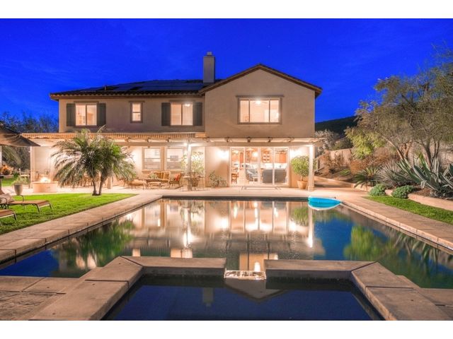GORGEOUS, HIGHLY UPGRADED Solar-OWNED home & pool. Entertainer’s Dream on a large private corner lot. Enter into a beautiful courtyard with fountain. Hard Wood flooring downstairs. Perfect entertaining between formal living & dining rooms/kitchen w butler’s pantry & family room with custom bar and double sliding doors. 4 Bedrooms upstairs & 1 bedroom down . Master bedroom has a very large walk-in closet with custom storage. See SUPPL for more.