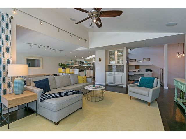 Beautiful top to bottom remodeled 2bd with optional 3rd/loft with stunning detail. Coastal chic living on the bluffs of Solana Beach with fantastic walkability. Beautiful new floors, custom cabinets & lighting, and Caesarstone kitchen counters lend to a light and bright unit. Wonderful location at northernmost end of the complex providing privacy, natural light, expansive hillside views of Solana Beach, next to beach access, and a charming peek-a-boo ocean view from the upstairs deck.