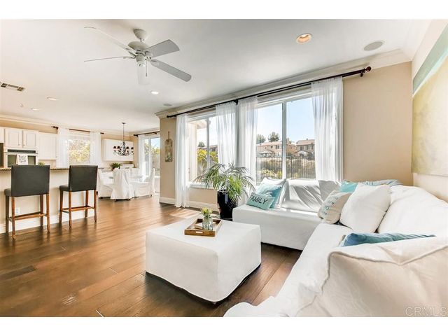 Your own little piece of heaven in San Elijo Hills nestled at the end of a private driveway and surrounded by a lush picturesque canyon. Ideally located on a double cul-de-sac in the gated community of Promontory Ridge, close distance to trails, award winning schools, Town Square & more! Highlights include front & rear balcony with gorgeous canyon & peek ocean views, elegant entryway, dark wood floors, fresh paint, entry level bed w/ bath, expansive gourmet kitchen, pool sized yard & so much more! See sup
