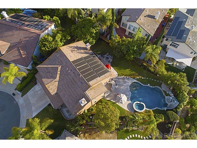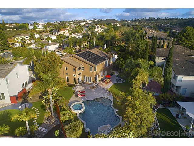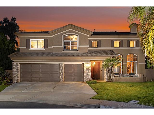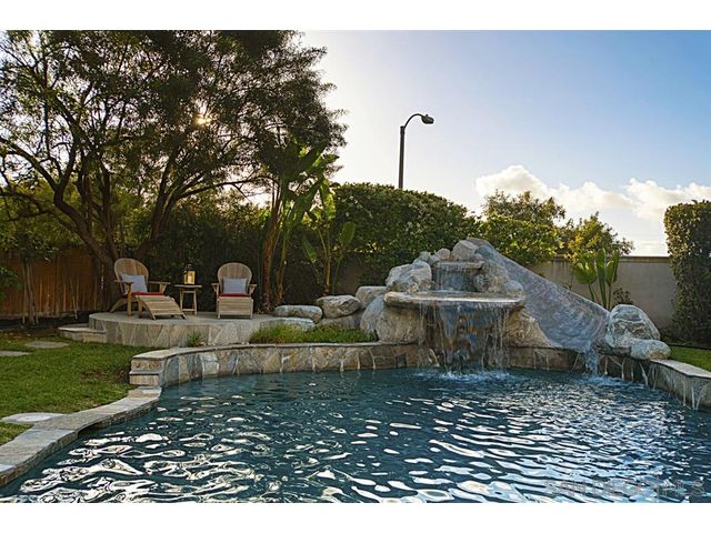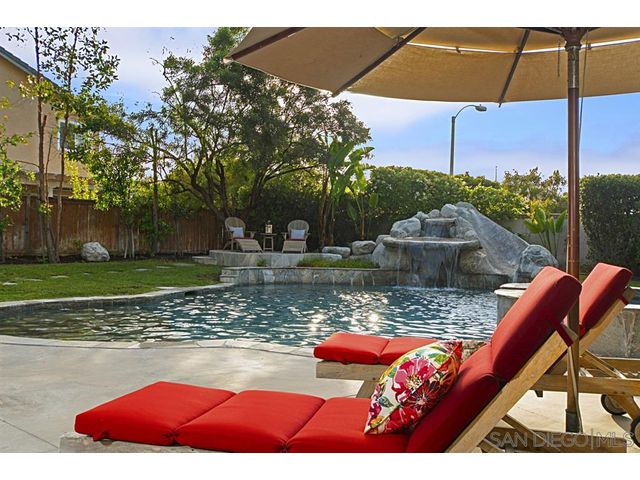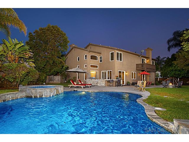 Nestled on a private cul de sac in Scripps Ranch, this home fuses timeless elegance with modern appeal. The large, private backyard features solar heated pool, spa, slide, waterfall & beach entry, built in BBQ & firepit, perfect for ultimate entertaining. A spacious floor plan; four bedrooms plus office/playroom, including downstairs bedroom & full bath. Natural light streams into the living room with vaulted ceilings. Master Suite is highlighted by a fashionista’s dream closet. Walk to top-rated school.