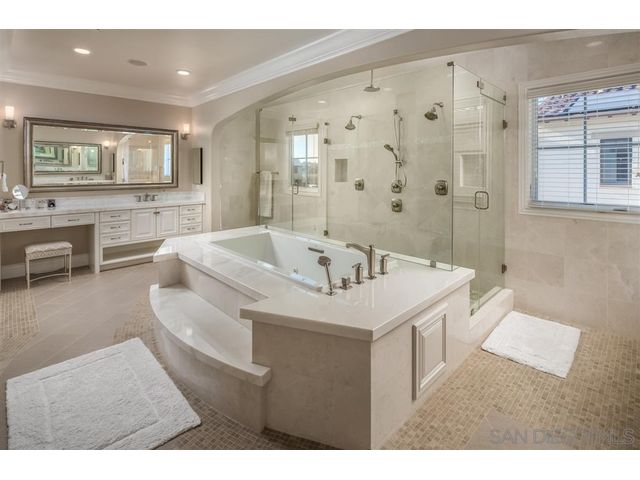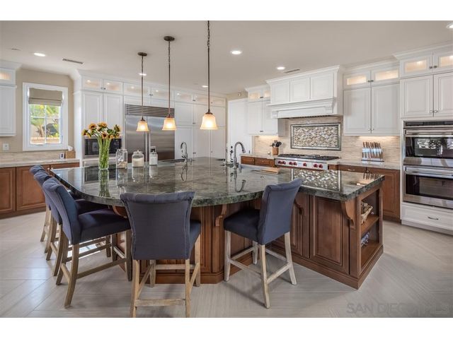 Beautiful turn key home with ocean breezes and ocean views from the property. 6,235 square feet of quality and beauty on 1/2 acre which includes a large grassy yard, large pool . 5 Bedrooms 5 1/2 Baths. Full Bed and Bath on Entry level. 2 offices, wine cellar, solar for house and pool. Garage parking for 4. Parking for 9. Enormous romantic Master retreat. Teen room with three bedrooms . Generous laundry room located upstairs. Security system with cameras.