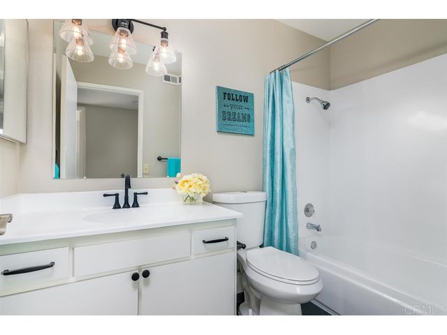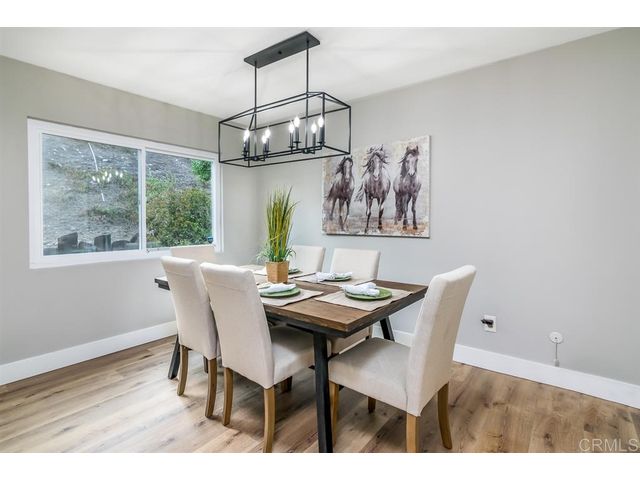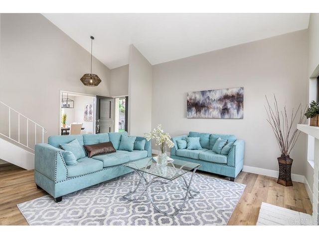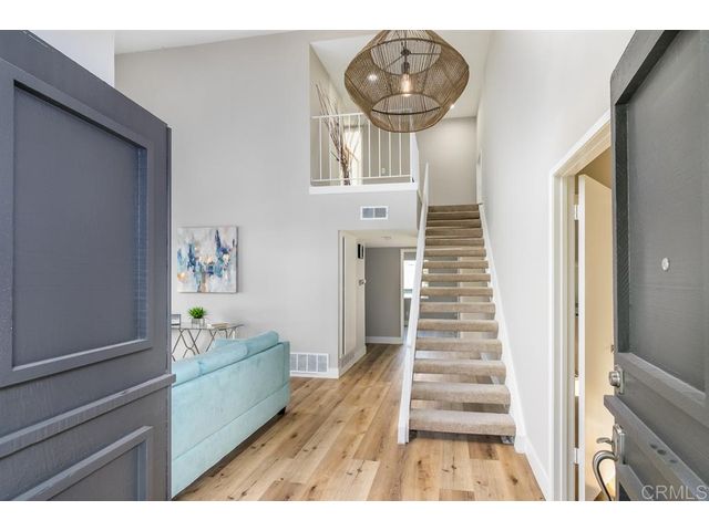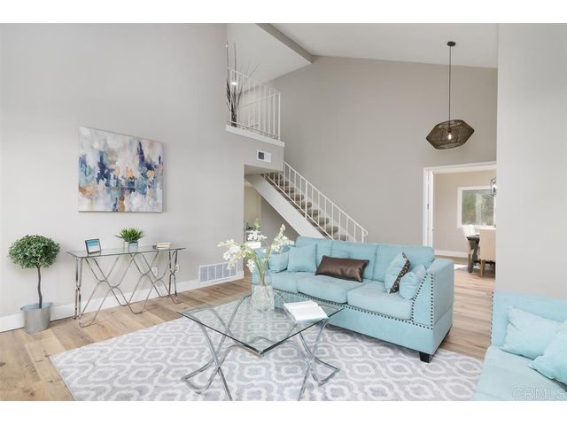 This charming renovated home sits on a large corner lot of a quiet, peaceful Scripps Ranch neighborhood. The home's bright & open floor plan features a spacious covered porch & high vaulted ceilings upon entry, a full bed/bath on the first floor and gorgeous views of the surrounding mountains & trees upstairs. The interior has been upgraded w/ brand new vinyl plank, tile & carpet flooring, fresh paint, all new fixtures and a remodeled kitchen w/ stainless steel appliances, modern cabinets & an eat-in bar.