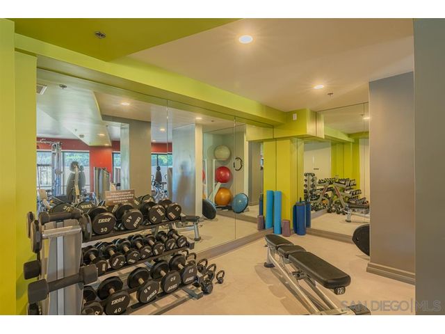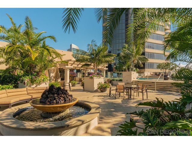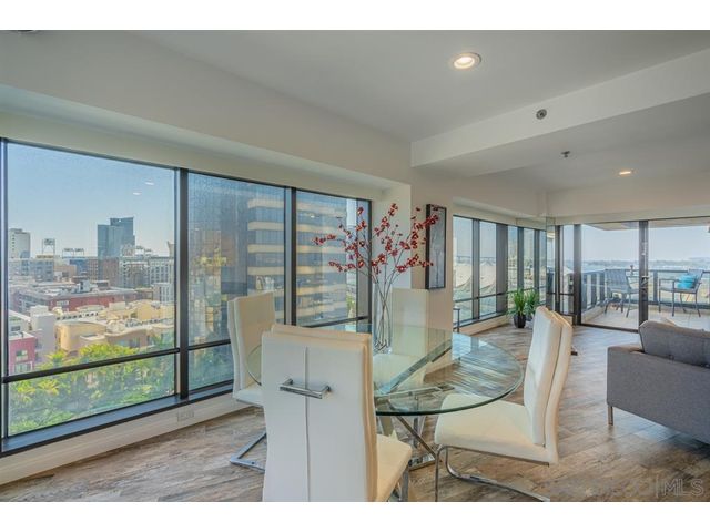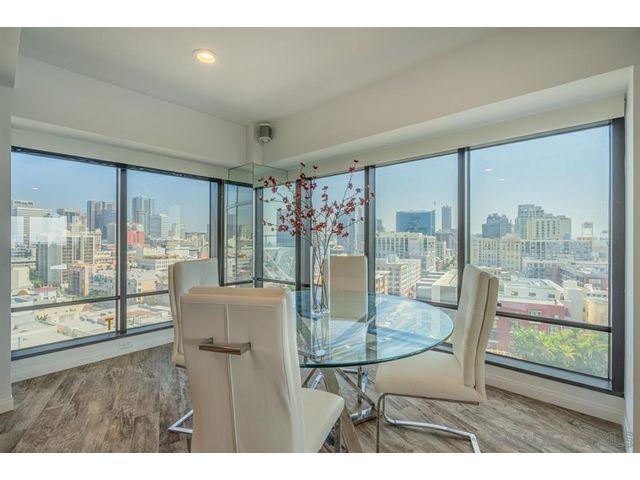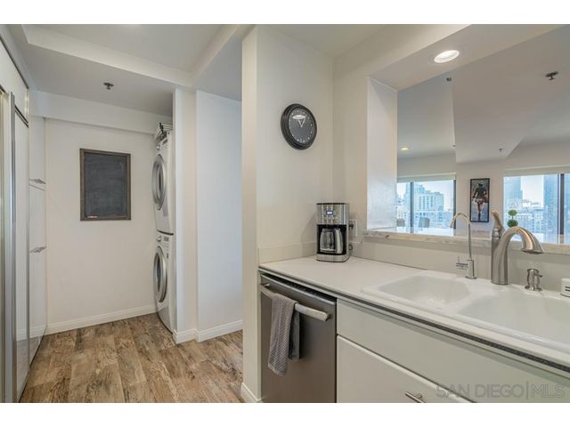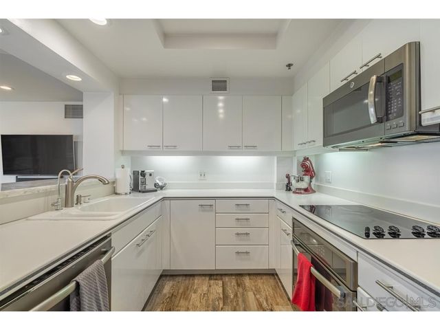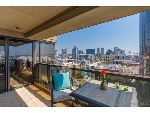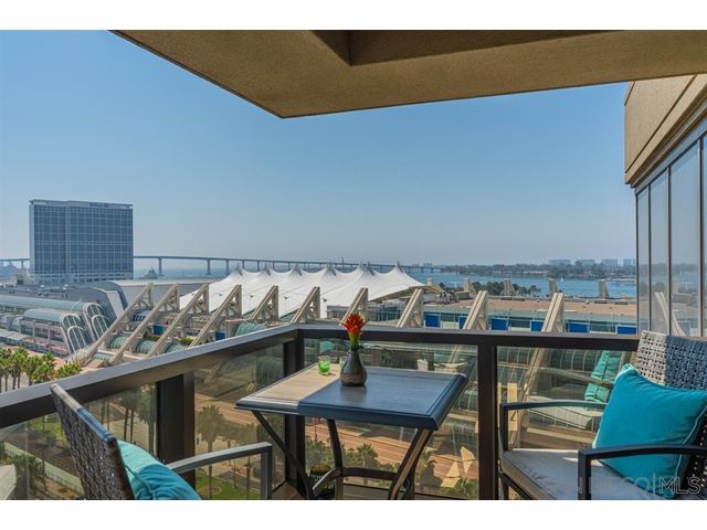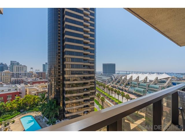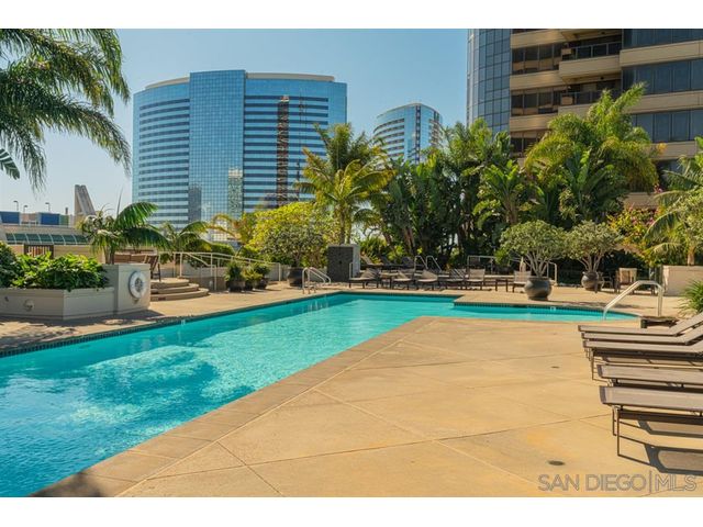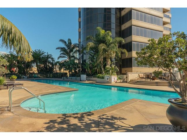 Live the dream in this 14th floor home featuring stunning views of the city skyline and Coronado bridge. The expansive living/dining room with walls of glass, make this a light and bright space. Italian porcelain tile flooring throughout the living, kitchen and bedroom. The bathroom has been beautifully remodeled with extra built-in closet, tiled shower & modern finishes. GE kitchen appliances. The Harbor Club offers resort style living with an incredible pool, hot tub, clubhouse, fire pits, gym & library