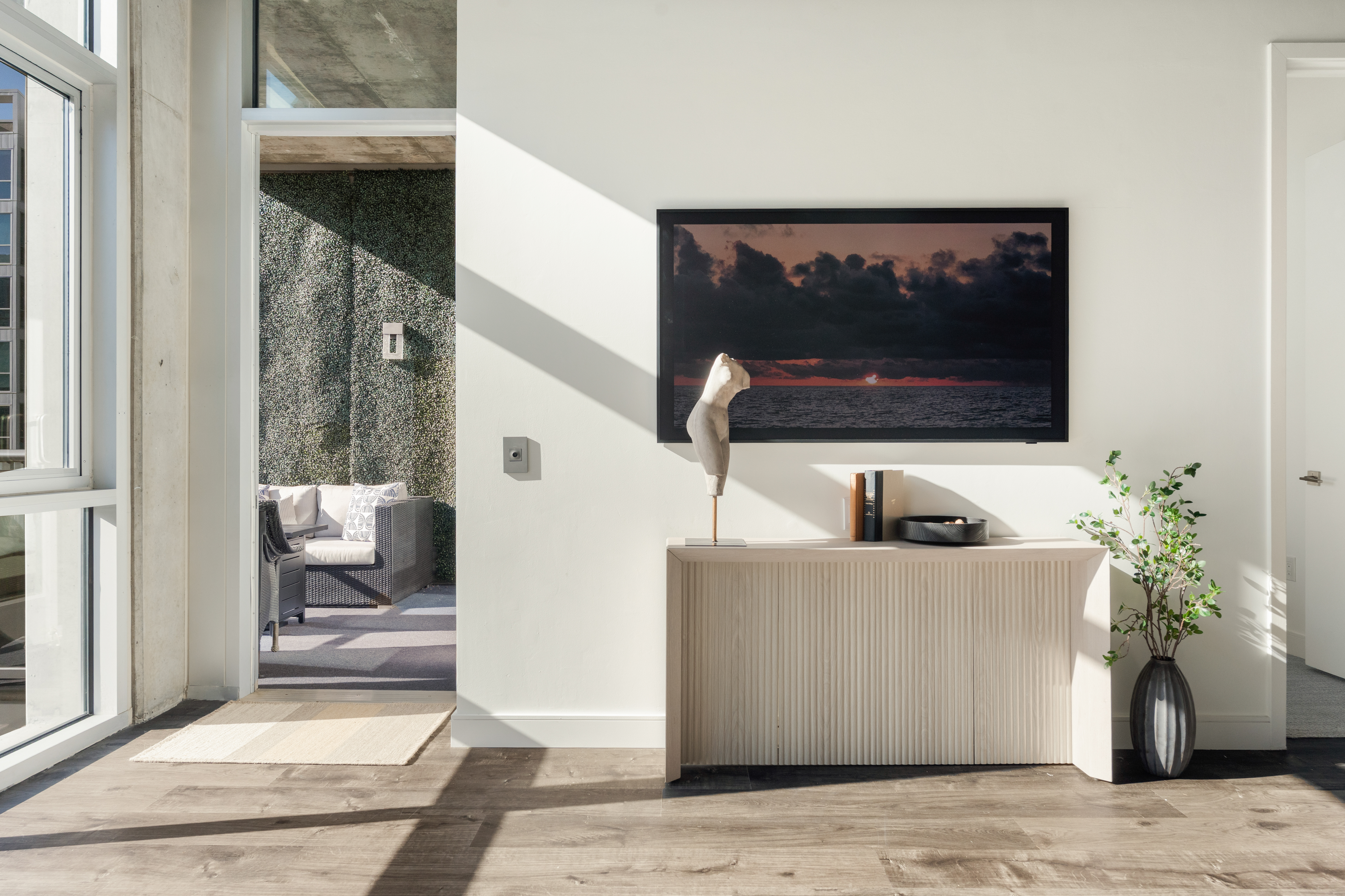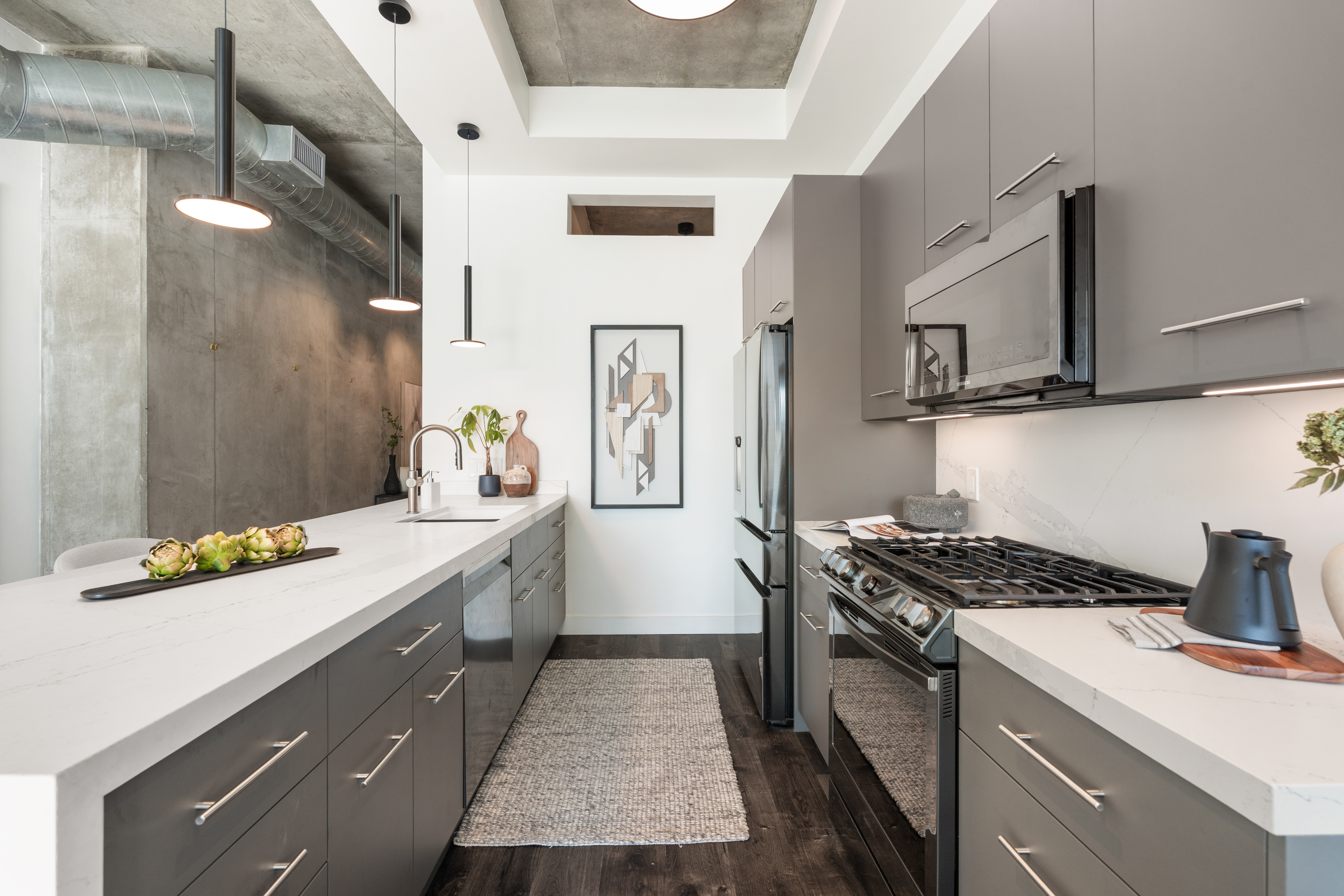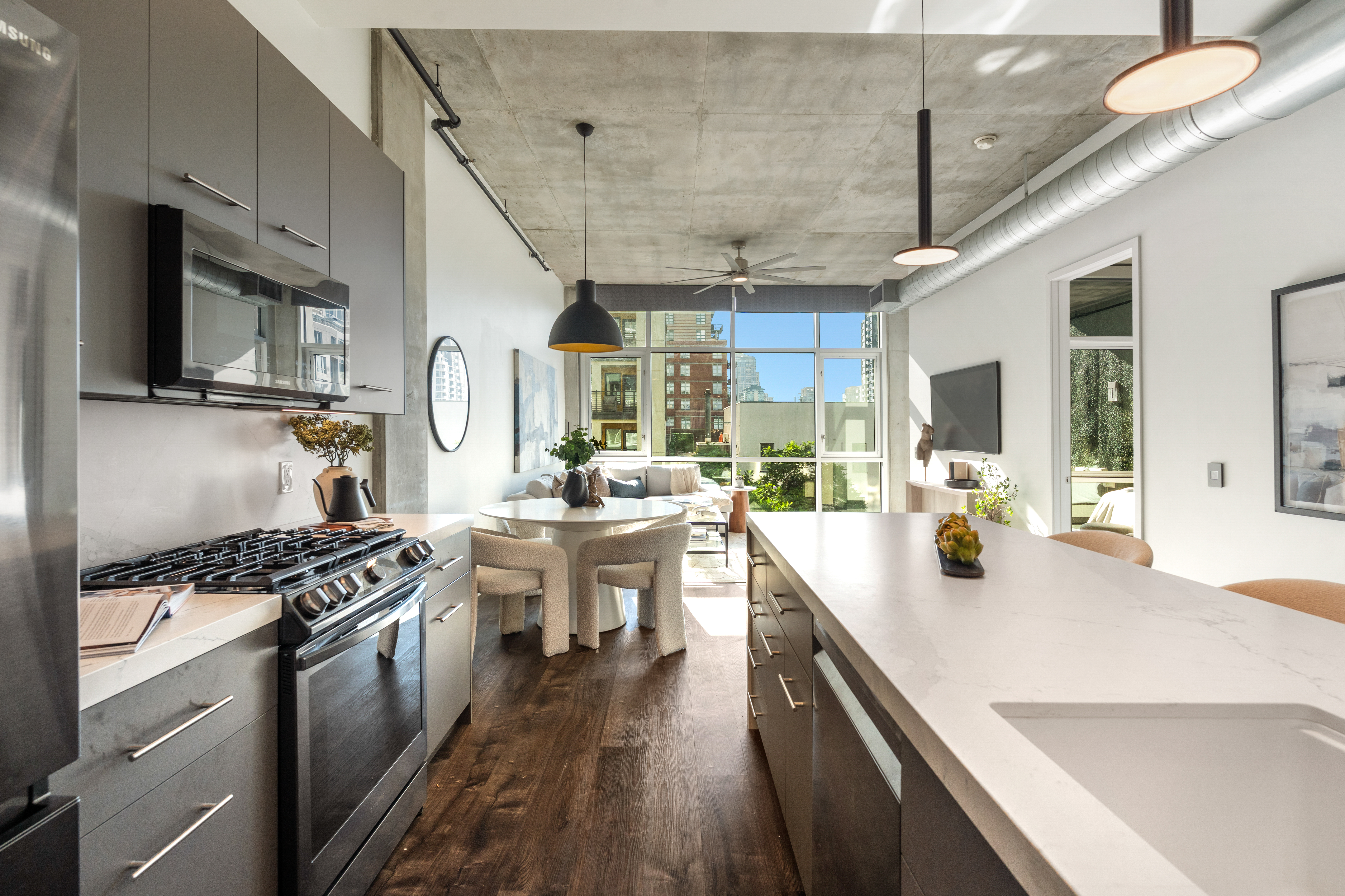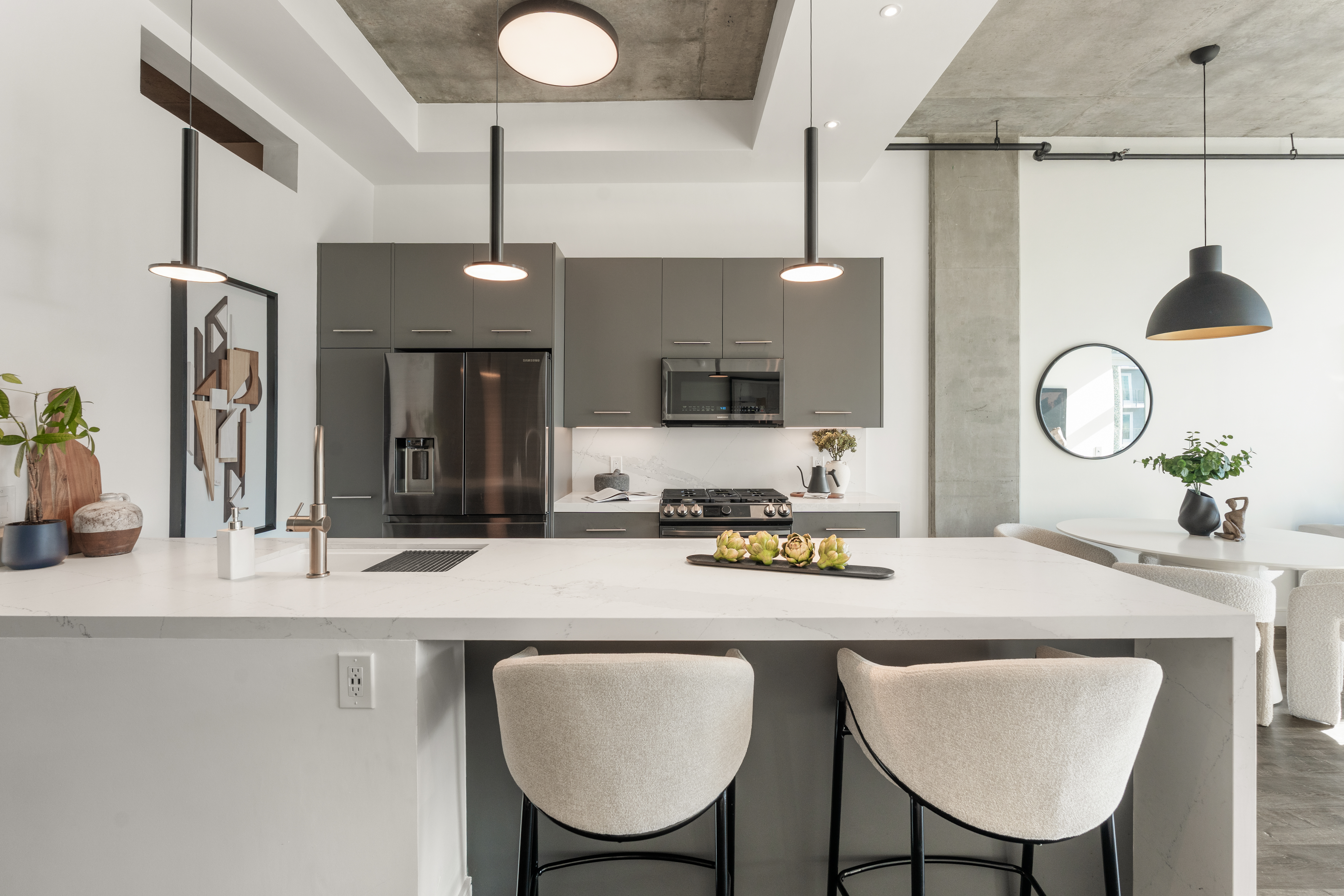 Step into a fully upgraded condominium in the heart of East Village. Designed by a principal of a respected interior design firm, this home has been thoughtfully updated with attention to detail. The open floor plan features recessed LED lighting and durable laminate flooring. At the center of the home, the kitchen is equipped with Euro-style cabinetry, Silestone countertops with a waterfall edge, and under-cabinet lighting for a clean, modern look.