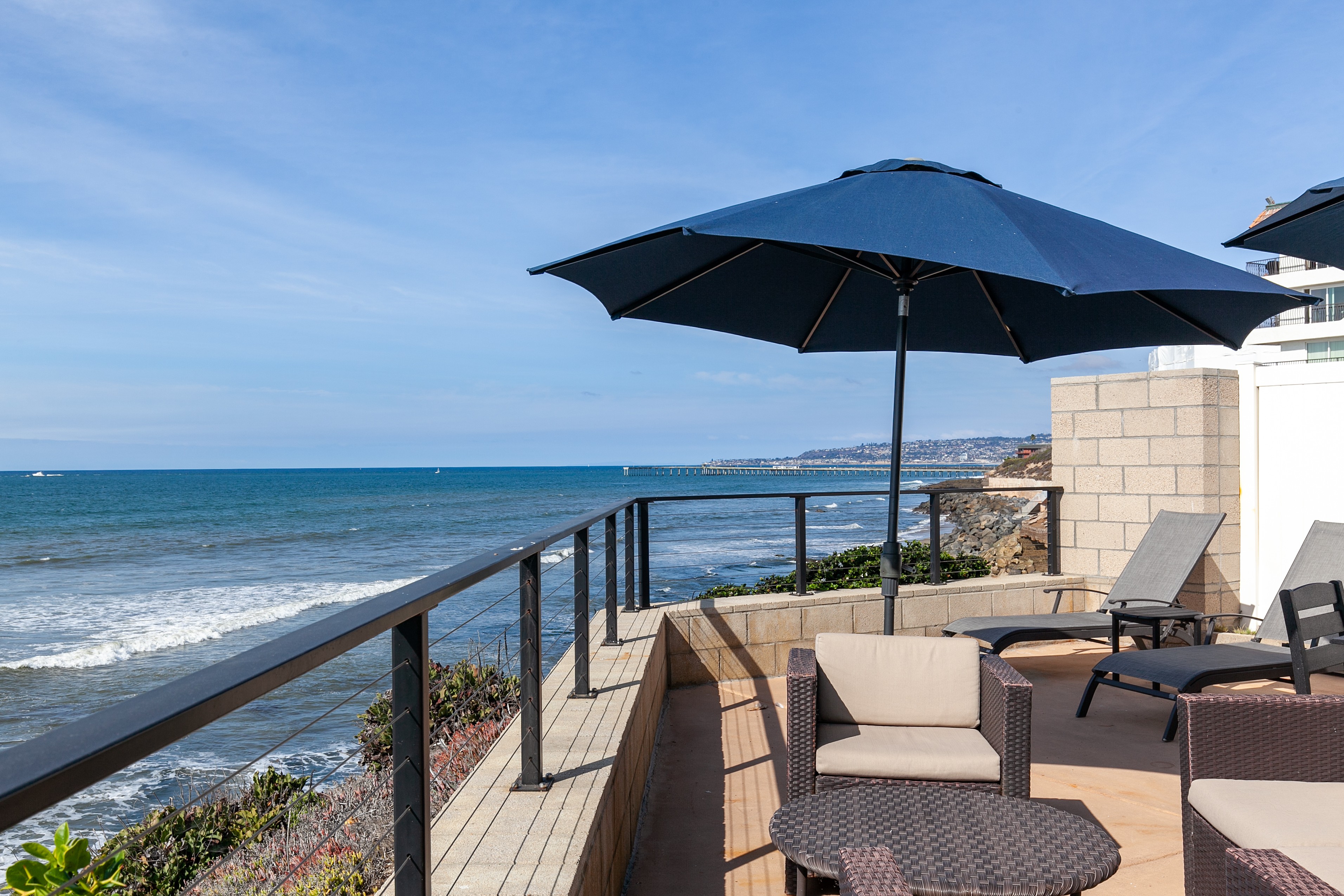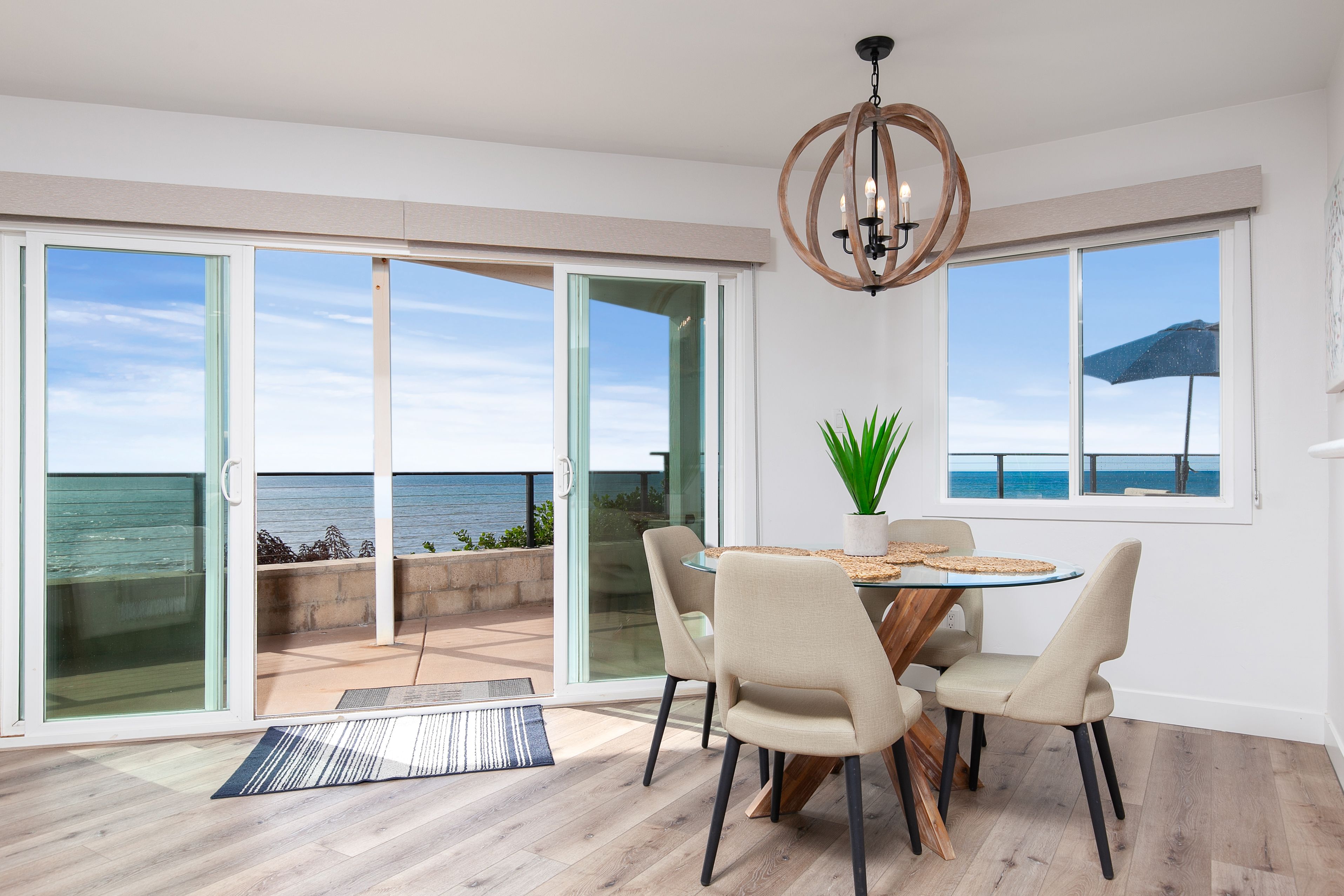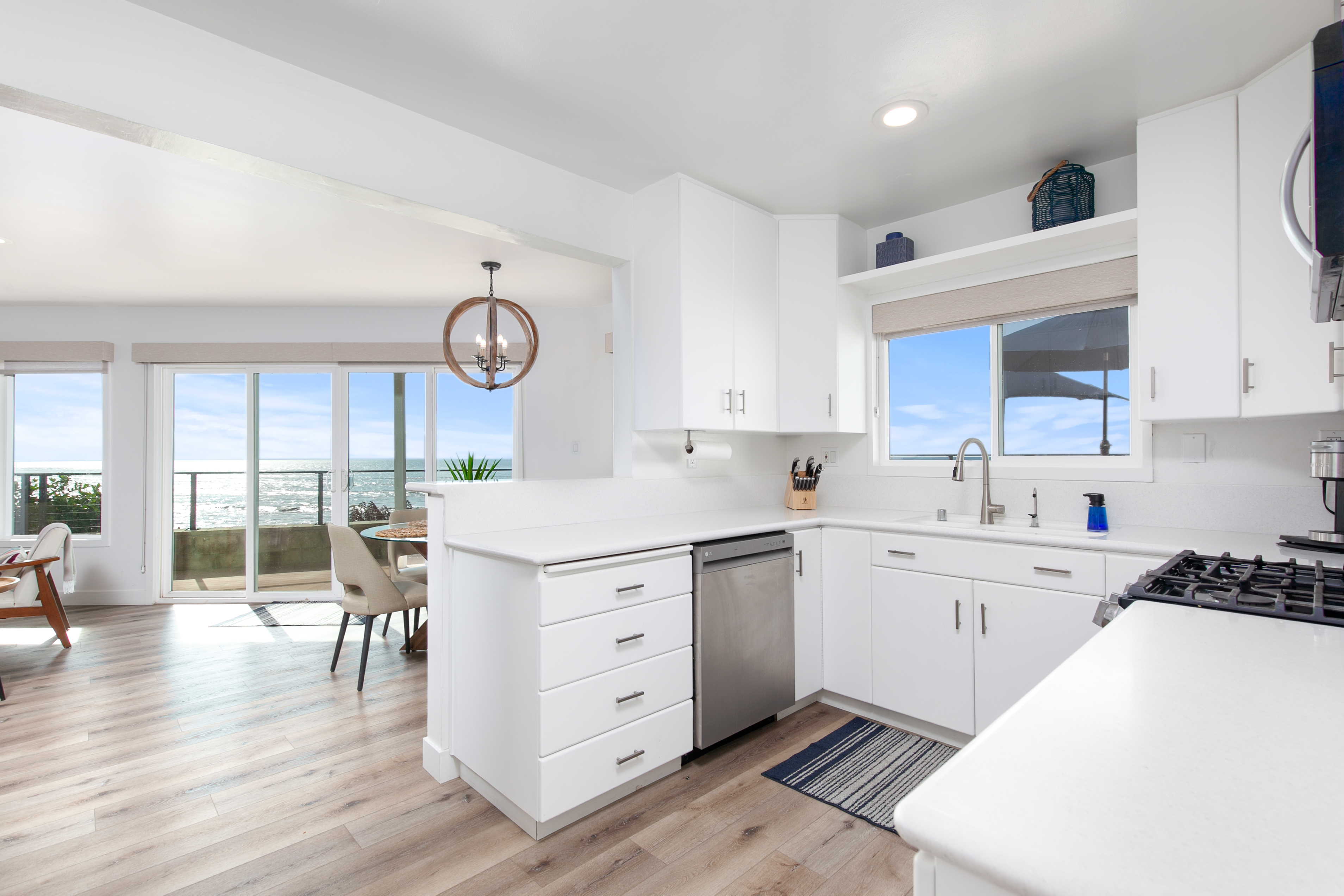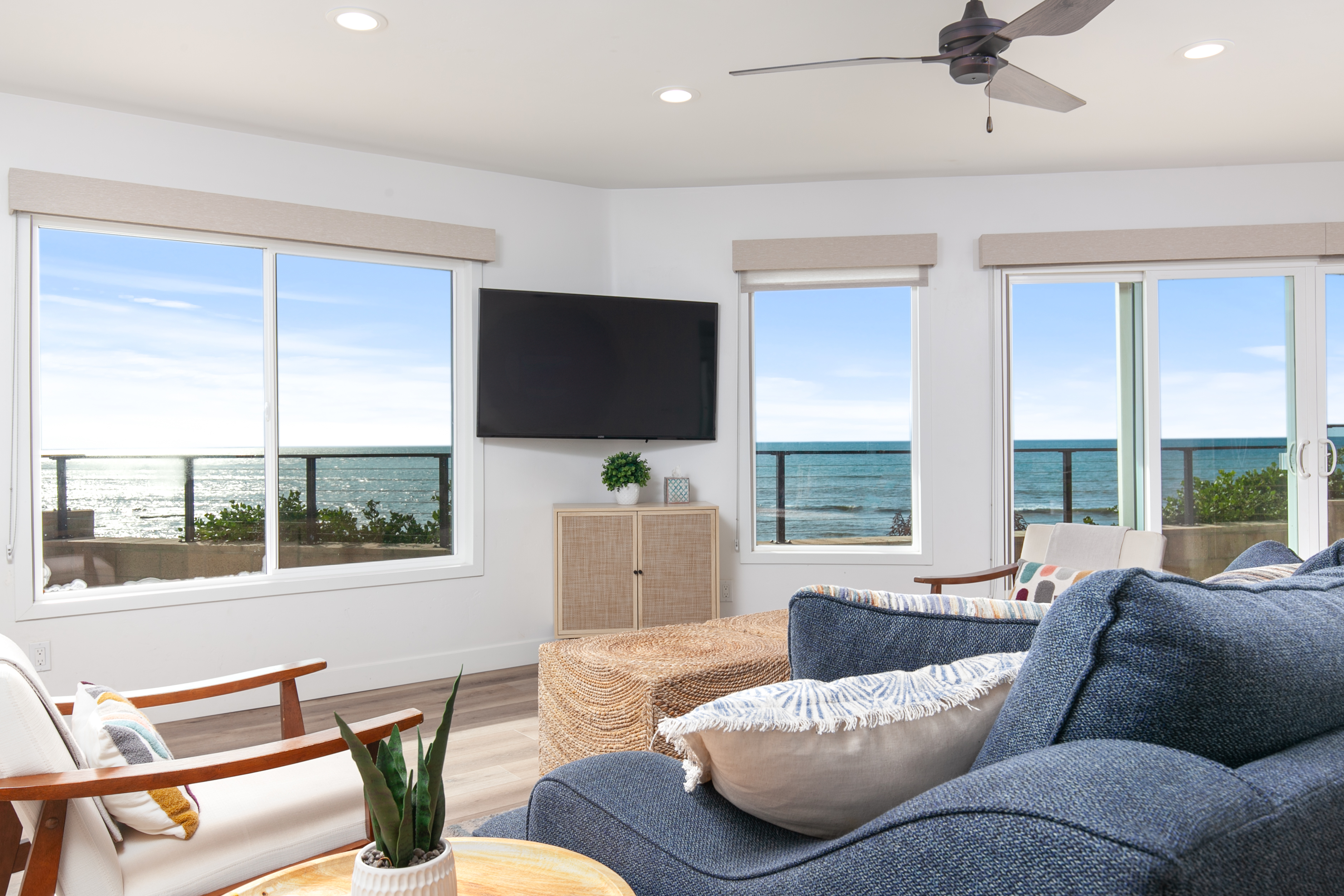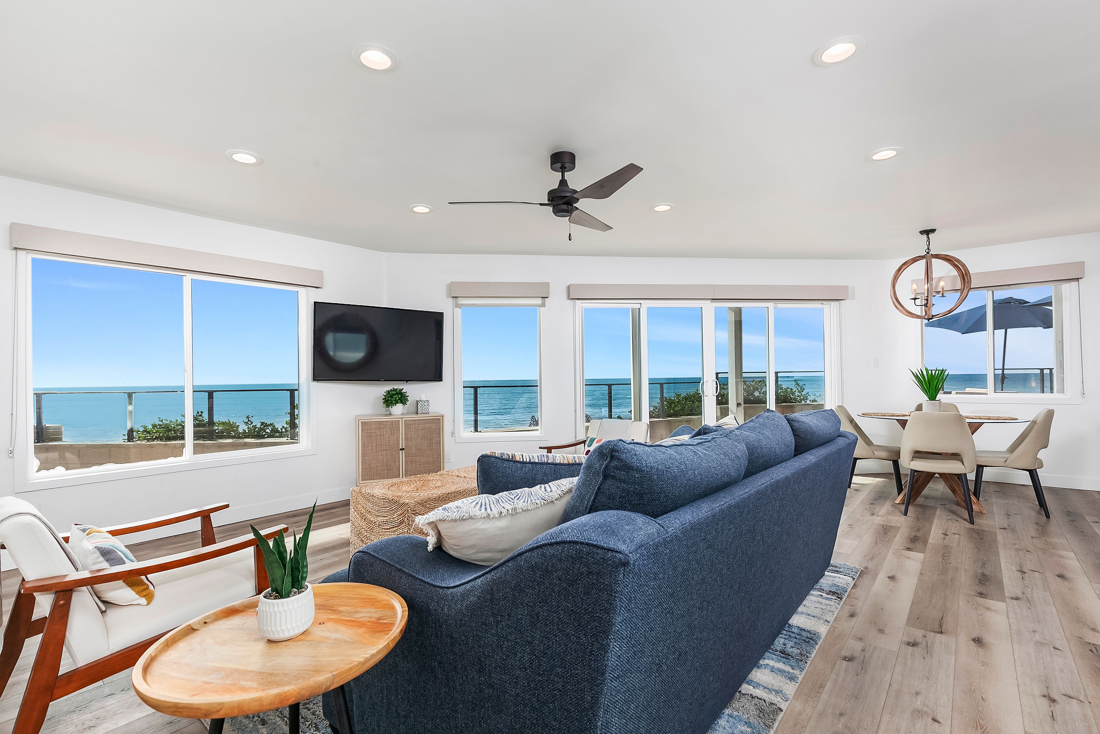 Perched directly above the Pacific Ocean in the coveted enclave of Sunset Cliffs, this exquisitely renovated coastal property offers a rare blend of world-class views, timeless modern design, and exceptional rental versatility. Sweeping ~280° sit-down ocean panoramas unfold from nearly every vantage point—capturing the shimmering horizon, the dramatic coastal edge, and the postcard-worthy stretch toward La Jolla. The interiors have been thoughtfully remodeled between 2020–2025 with quartz countertops, stainless steel appliances, LVP flooring, designer-finished baths, and dual-pane windows, creating a cohesive contemporary coastal aesthetic throughout. The primary residences are complemented by two discreet bonus studio units, each refined with the same elevated level of finish and offering valuable flexibility for extended-stay guests, creative use, or enhanced income potential (buyer to verify). Several spaces enjoy private decks or terraces positioned to make the most of the uninterrupted oceanfront setting, creating extraordinary moments from sunrise to sunset. With a rare four-car garage, newly updated exterior features including garage doors and staircases, and a blend of short-term and long-term rental options already in place, this turn-key property stands as an exceptional offering in one of San Diego’s most celebrated coastal corridors.