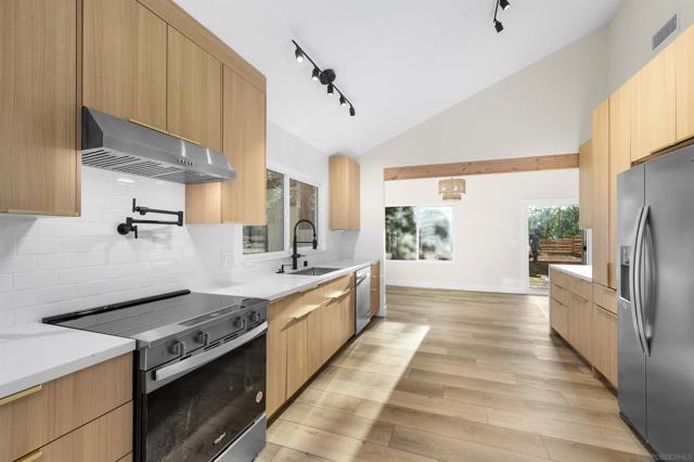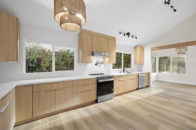 Newly upgraded and remodeled throughout. Nov 22 Showings start. This is the one you have been waiting for. Some of the NEW upgrades include: roof, AC, heater, flooring, kitchen, 3 bathrooms, windows, paint, landscape, 200 AMP electrical panel, and 3 sliding glass doors (2 off of bedrooms). 4 rooms and 3 have bathrooms connected. Top floor primary bedroom has a 10x8 redwood deck out the slider. Don't miss the secret little "fort" hiding room in the kitchen (perfect for kids or adults who want to hide). Vaulted ceilings in living room with a cozy fireplace. WAIT...I forgot the new redwood deck which is about 750 SF and full paid off SOLAR.