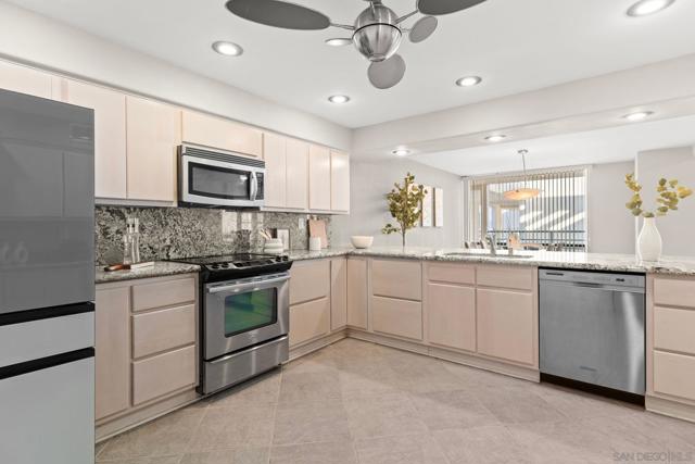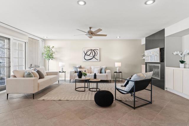 Welcome to resort-style living in the heart of La Costa! This beautifully updated single-level residence offers 1,783 sq. ft. of open-concept living, designed for comfort, convenience, and effortless entertaining. Enjoy elevator access from the secure entry directly into one of the most desirable floorplans in the community. Inside, natural light pours into the expansive living and dining area, complete with a cozy gas fireplace and direct access to one of three private balconies — perfect for morning coffee or evening sunsets. The modern kitchen features quality appliances, abundant cabinetry, and a dedicated laundry room just steps away. Two primary suites on opposite ends of the home provide ideal privacy, each with a generous en-suite bathroom, large closets, and a balcony retreat. Storage is never a concern with ample closets and additional private storage in the garage. This boutique community offers two assigned parking spaces in a gated garage and access to a massive rooftop deck overlooking the lush Omni La Costa Resort golf course — a standout feature with unforgettable views. Additional amenities include a sparkling community pool and spa. Perfectly located minutes from Carlsbad’s beaches, I-5 access, and the trendy Beacon La Costa shopping and dining center, plus nearby wellness offerings, cafés, and everyday conveniences. Whether you seek a quiet coastal retreat or a stunning place to entertain, this home delivers the best of La Costa living in a rare single-story layout. Welcome home!