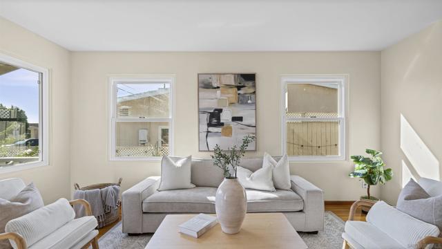 Set above the neighborhood with wide reaching views, this 3 bedroom, 2 bathroom, 1,250 sq ft home blends comfort with convenience. The interior features stainless steel appliances, original hardwood floors, and a surprisingly spacious primary bedroom considering the size of the home. Enjoy a newer roof installed in 2018 and a private backyard deck perfect for taking in the city skyline. Located minutes from major freeways, shopping, parks, and dining, this home offers an ideal San Diego lifestyle with easy access to everything you need. A great opportunity for anyone seeking views, central location, and everyday livability.