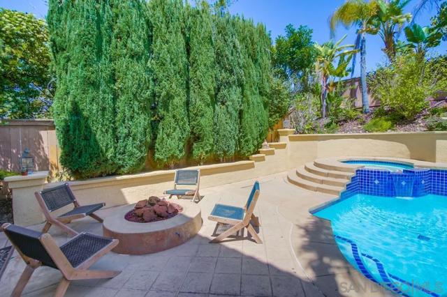 Welcome Home to Scripps Ranch! This executive home, on a peaceful cul-de-sac in the San Lucena community, is beautifully maintained and features 5-bedrooms, with a comfortable floorplan, owned Solar, and plenty of space to relax, gather, and enjoy. Drenched in natural light, the warm and inviting family room connects seamlessly with the freshly painted kitchen, and has easy access to the tropical backyard. The formal living and dining areas are bright and airy, enhanced by elegant wood flooring and vaulted ceilings. The backyard is a true retreat, complete with a sparkling pool and spa, mature trees, a firepit, and lush landscaping in both the front and back—perfect for quiet evenings or weekend gatherings. Additional highlights include a 3-car tandem garage with electric vehicle charging ports, ample driveway parking, fully paid-off solar panels, low HOA fees, and no Mello Roos. Ideally located near award-winning EBS Elementary, Scripps Ranch Community Park, local shopping, dining, and convenient freeway access, this home offers the perfect blend of comfort, convenience, and community in one of San Diego’s most desirable neighborhoods.