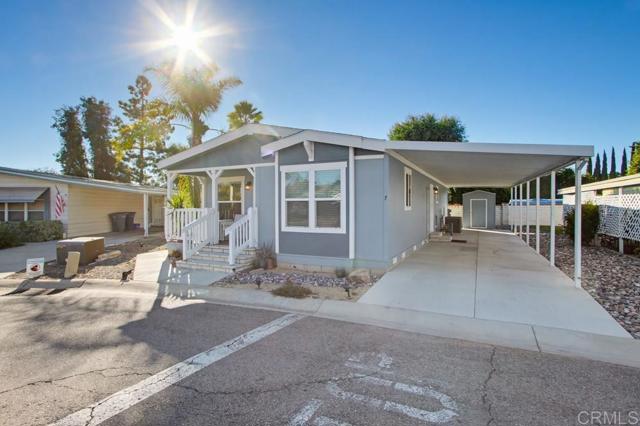 Beautiful 2024 Skyline home located in Sundance Mobile Home Park. The open floor plan make this home fell very spacious. The kitchen has beautiful wood cabinets, stainless steel appliances, a center island, pendent lights, single basin stainless steel sink, tile backsplash, and walk-in pantry. Outside you have a wonderful front porch, side patio with an awning, and low maintenance landscaping with sprinklers. This is a level set home so there is minimal step up to get into the home. There is a shed to store your extra items. Everything is almost new on this home. Sundance Mobile Home Park is a peaceful 55+ community with many activities and amenities including a beautiful clubhouse, heated pool, spa, sauna, fitness room, and green areas. This home is located on the north side of Escondido with easy access to the 15 and 78 freeways and all that North County San Diego has to offer.