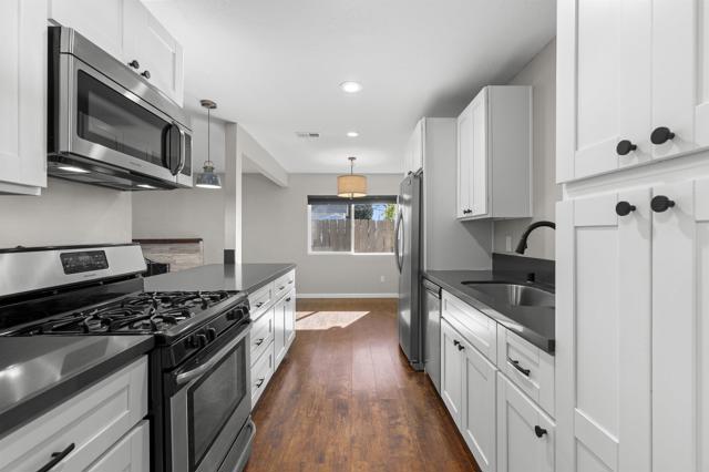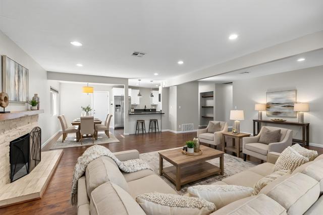 *REMODELED & GORGEOUS SINGLE STORY CHARMER - Chef's Kitchen has SS Appliances, SOFT-CLOSE Drawers, QUARTZITE Counters, Farmhouse Sink, LED and PENDANT Lights, COUNTER seating & SEPARATE Dining Area*BOTH Bathrooms Remodeled too - travertine, tile, fixtures, vanity in primary bathroom, bidets & exhaust fans in both*SPACIOUS 20x20 Living Room has Stacked Stone FIREPLACE & Wood Mantle*SEPARATE Family Room is 24x14 with VAULTED Wood Beamed Ceiling & WALK-IN Storage/Pantry Room (possibly an indoor laundry room)*CENTRAL A/C & HEAT - PLUS A WHOLE HOUSE FAN reduces A/C use & power bills*SMART Thermostat*DUAL PANE Windows*Wood Laminate flooring throughout*Newer Ceiling Fans*PRIMARY Bedroom Suite has Closet Organizer (soft close drawers here too) & BARN DOOR leading to REMODELED BATHROM*FRENCH DOORS lead to BACKYARD OASIS - beautifully landscaped, twinkle string lights & landscape lighting, fruit trees (Orange/Pomegranate/Clementine/Kumquat/Persimmon), NEW SOD, more drainage added, automatic sprinklers & lighting, newer fencing, newer retaining wall around perimeter of yard - IDEAL for additional guest seating*NEW GUTTERS*TURF added in Front Yard*Newly Painted Exterior*ATTACHED 2-Car Garage has DIRECT ACCESS into house, Gladiator Storage System & W/D HOOKUPS (Gas & Electric)*NO HOA FEE*Also, plumbing/sewer has been epoxy lined to the city main*Also, Fridge & W/D convey*Great Location - Close to shopping, transportation & FWY for EASY Commuting*HURRY, THIS IS THE ONE YOU'VE BEEN WAITING FOR!