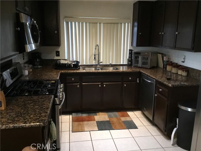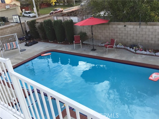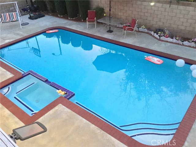 Welcome to this 3 bedrooms and 3 bathrooms plus a bonus room 2 story Pool/Spa home! Features upon entry and staircase are an open formal living room and dining room with high vaulted ceilings. One full bedroom and bathroom downstairs. Upstairs provides 2 bedrooms with shared bathroom. The primary bedroom has a walk-in closet, bathroom with dual sink and a door to the balcony that overlook the pool and backyard. There are private stairs from the balcony that lead to the pool area. The main level has a fantastic family room with a fireplace and a sliding door that leads directly to the covered patio. sparkling pool, spa, and barbecue area. Gorgeous Granite counter top kitchen with recessed lights and an adjacent breakfast area. Kitchen appliance are included. This well-equipped kitchen has all necessary tools and cabinets. Additional features are new exterior paint, washer and dryer room. RV parking and corner lot. This home is conveniently close to shopping centers, schools, freeways, and restaurants. The WELCOMING open floor plan seamlessly the living, dining, and kitchen areas on the main floor