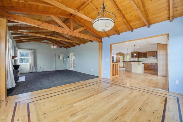 Incredible opportunity on approximately 6 acres with endless potential. The property offers room for cosmetic updates and creative improvements. The current home presents multiple ADU possibilities, including a potential junior ADU on the lower level with a separate entrance, as well as options for a detached ADU or a simple conversion on the main floor. The expansive kitchen offers an ideal opportunity to become the centerpiece of the home, complemented by a formal dining room, soaring vaulted ceilings in the dining and living areas, and a welcoming living room fireplace with a pellet stove. The primary suite is generously sized and features a walk-in closet. Located adjacent to a brand-new development, this property is rich with future possibilities and truly a must-see.