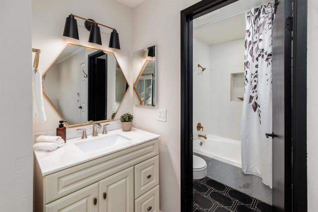 Step inside this beautifully upgraded 2-bedroom, 2.5-bath condo in the La Costa community and feel right at home. From the moment you open the front door, you’re greeted by custom built-ins, a convenient stackable washer/dryer, and a fully renovated powder room. Continue inside to the heart of the home where a renovated kitchen with sleek cabinetry, upgraded lighting, and stainless steel appliances flows seamlessly into the theater-style living room with an elegant electric fireplace—a perfect space for entertaining or relaxing. Retreat to your private spaces, where both bedrooms offer remodeled en suite bathrooms and thoughtfully designed closets. The primary suite is a true haven, complete with two spacious closets and a private deck—an ideal spot to enjoy your morning coffee or evening glass of wine. Outdoor living continues downstairs with a patio retreat outfitted with built-in cabinets, shelving, and a mini fridge, perfect for entertaining friends or relaxing in style. Additional highlights include two secure assigned parking spaces and stylish upgrades throughout. Casa Grande residents enjoy a sparkling pool and spa, plus an unbeatable location near world-class La Costa golf courses, shopping, dining, and the beach. Upgraded. Comfortable. Coastal. This isn’t just a condo—it’s the La Costa lifestyle.