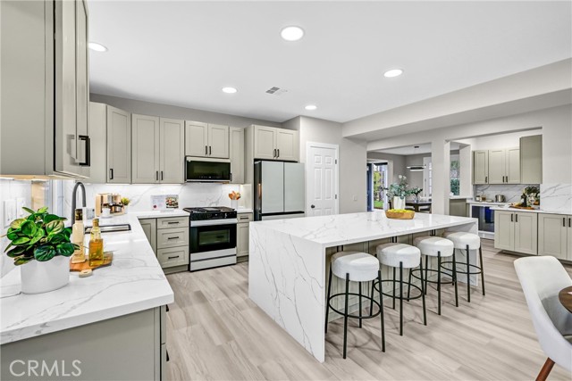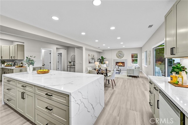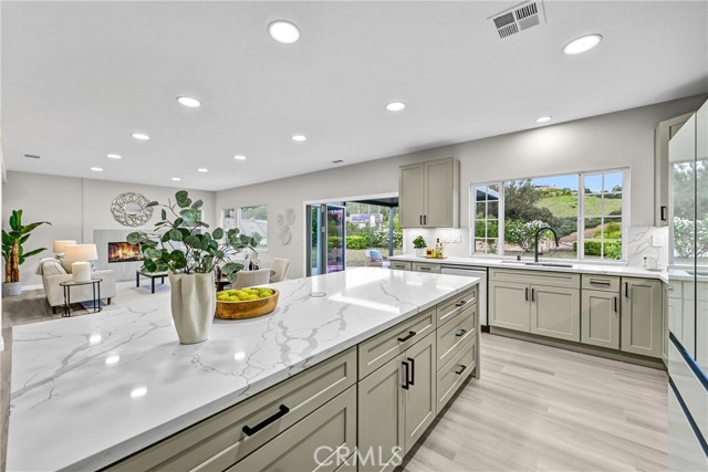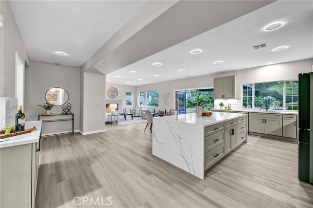 Tucked into a quiet pocket of San Marcos and perched at the top of a peaceful cul-de-sac, this completely remodeled residence offers an exceptional blend of refined design, privacy, and elevated indoor-outdoor living. Despite being far from congestion, the setting feels spacious and calm, surrounded by open skies, gentle hills, and established homes. The home, situated on an elevated lot with long sightlines, enjoys abundant natural light and panoramic views that change throughout the day. The surrounding streetscape reflects pride of ownership, with mature landscaping and generous spacing between homes reinforcing the relaxed residential atmosphere. Thoughtfully reimagined, the 3,153 sq ft open-concept layout is designed for both comfort and versatility. The expansive great room anchors the home, flowing seamlessly into the exquisitely designed kitchen and bar areas tailored for luxury living and effortless entertaining. These spaces serve as a natural gathering point, combining high-end finishes with functionality and style. Multiple areas throughout the home offer unique flexibility to suit a variety of lifestyles, including dedicated spaces ideal for a private office, gym, or creative studio. Enhanced with privacy glass to maintain openness while allowing separation when desired. Expertly layered lighting throughout the home creates a warm, candlelight-like ambiance in the evenings, adding a romantic and inviting feel that elevates everyday living. Set on an approximately 20,000 sq ft lot, the largest on the cul-de-sac, the outdoor spaces invite both quiet mornings and evening gatherings. Elevated on a hill, the property enjoys exceptional privacy, serene surroundings, and a resort-like atmosphere rarely found in this area. Every detail of the renovation reflects careful craftsmanship and intentional design, resulting in clean modern lines, a refined aesthetic, and a seamless balance between sophistication and livability. The home feels distinctive, offering a living experience that stands apart from others in the neighborhood. Ideally located near dining, shopping, fitness options, and daily conveniences, with easy access to coastal destinations and downtown San Diego, this property exemplifies one of the most enduring principles in real estate: LOCATION, LOCATION, LOCATION. In one of San Marcos' most desirable neighborhoods, this home boasts a spacious, light-filled, private, and timeless setting.