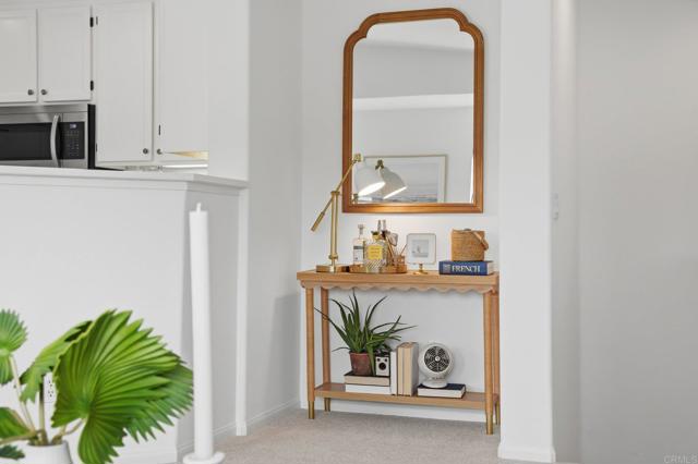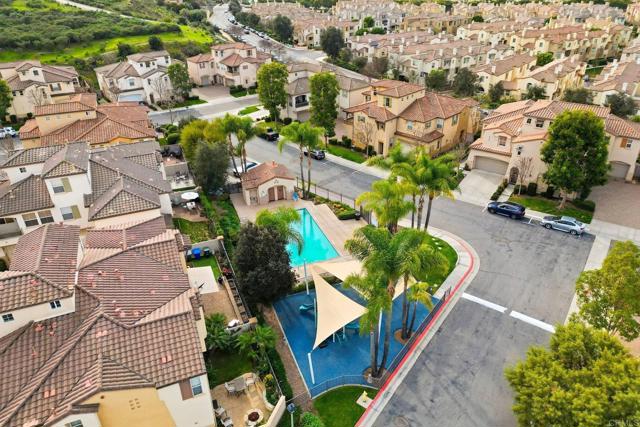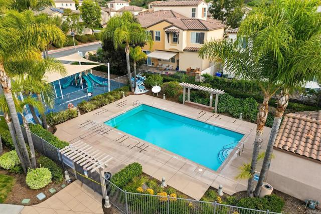 Desirable Campana gated community in San Marcos — end unit perched at the top of the hill with western-facing views. This beautifully upgraded 2-bed, 2-bath townhome lives like a single level once you reach the main floor — thoughtfully laid out for comfort and modern living. Freshly painted with new carpet throughout, it's completely turnkey and move-in ready. Light-filled interiors frame elevated hillside views, while the gated community offers a pool, playground, and serene outdoor spaces. Minutes from Cal State San Marcos, the 78 Freeway, Kaiser Permanente Medical Center, with easy access to local parks, trails, shopping, and dining. A rare find in one of San Marcos' most sought-after neighborhoods.