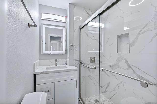 "Welcome to this beautifully upgraded east facing home located on a quiet cul-de-sac in the highly desirable 4S Ranch / Del Sur area of San Diego, within the award winning Poway Unified School District. Designed for both comfort and functionality, this spacious home offers an open concept layout, high ceilings, and a perfect blend of modern updates, flexible living spaces, and an entertainer’s backyard. Located close to top rated schools, parks, shopping, and dining, this home offers incredible value, lifestyle, and versatility in one of San Diego’s most sought-after communities. The light filled remodeled kitchen features quartz countertops and a large island with seating, ideal for everyday living and entertaining. Additional upgrades include new flooring upstairs, a fully remodeled bathroom, new blinds throughout the main floor, and a tankless water heater. Home has Solar. A downstairs bedroom currently used as a home office with a full bathroom on the main level offers excellent flexibility for guests or work from home needs. Upstairs includes four bedrooms and a convenient laundry room. An additional bathroom was added by the owner without permits. Buyer to verify all information including square footage, and property details. The backyard is a true highlight perfect for entertaining and relaxation featuring a built-in BBQ, outdoor fireplace with TV wall mount, multiple seating areas, and a basketball area. In addition, the garden includes Pomegranate, Orange, and Avocado trees, along with Moringa and Curry leaf plants, creating a productive outdoor retreat.