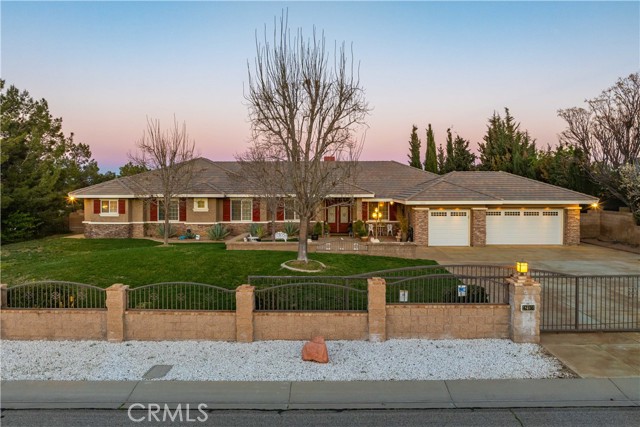 ***LIVE BEAUTIFULLY*** West Lancaster Custom Single Story Estate In The Highly Desirable Desert Rose Community w/ Nearly A 1 Acre Corner Lot, 3 Car Garage, RV Access, & A Security Gate! This beautifully designed home welcomes you with a grand entry and double door entrance, leading to a spacious formal living room, formal dining room, and a large family room with a cozy fireplace. The chef’s kitchen features premium Viking stainless steel appliances including a hood range, double gas stove and oven, and a large center island. The kitchen also offers a breakfast bar with seating, an informal dining area, and recessed lighting throughout. The oversized primary suite offers private backyard access, two large closets, dual sinks on opposite sides, a soaking bathtub, and a separate walk-in shower. The secondary bathroom includes dual sinks for added convenience. The front yard features a large grassy area, a security gate, and a long driveway leading to the 3 car garage on this desirable corner lot. The expansive backyard offers a covered patio area, an outdoor bathroom space, and a huge grassy area perfect for entertaining, relaxing, or enjoying the gorgeous mountain views and peaceful surroundings. A rare opportunity to own a spacious single story estate with land, privacy, and room for RV parking in one of West Lancaster’s most sought-after communities.