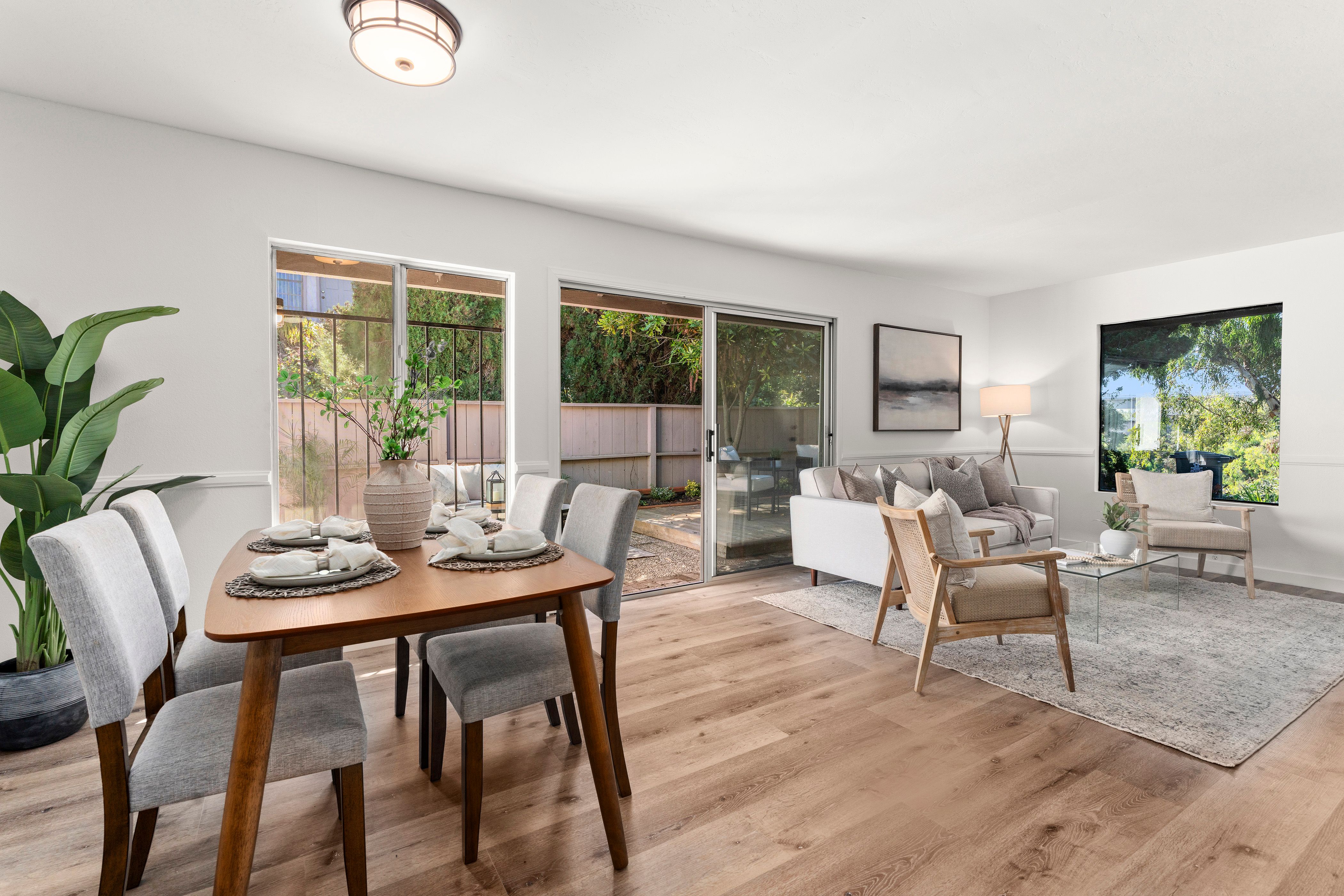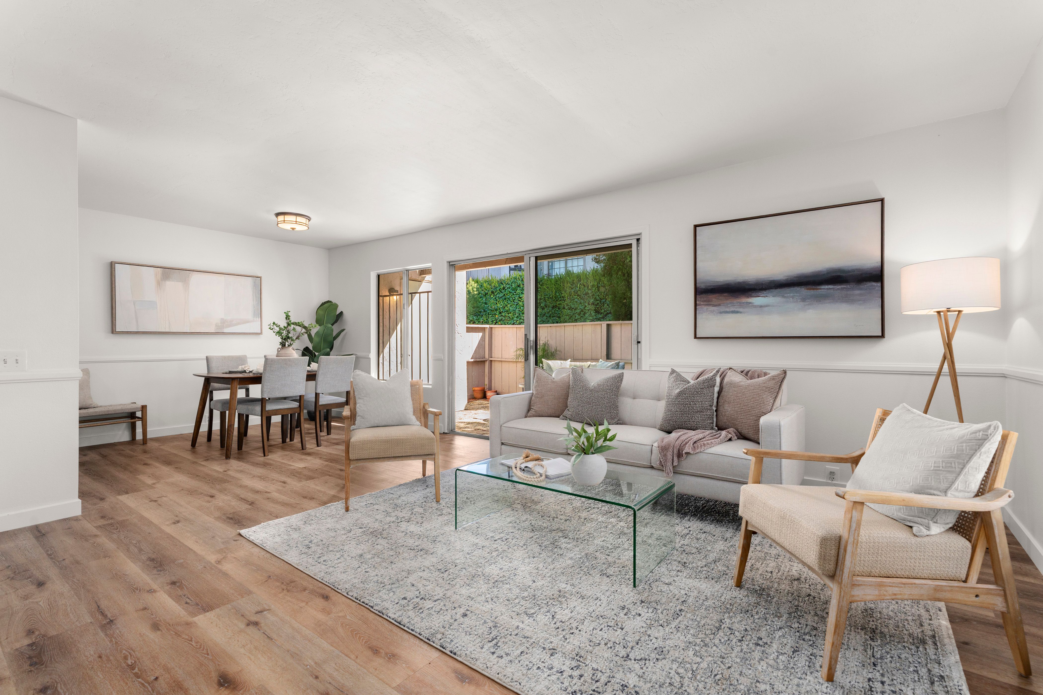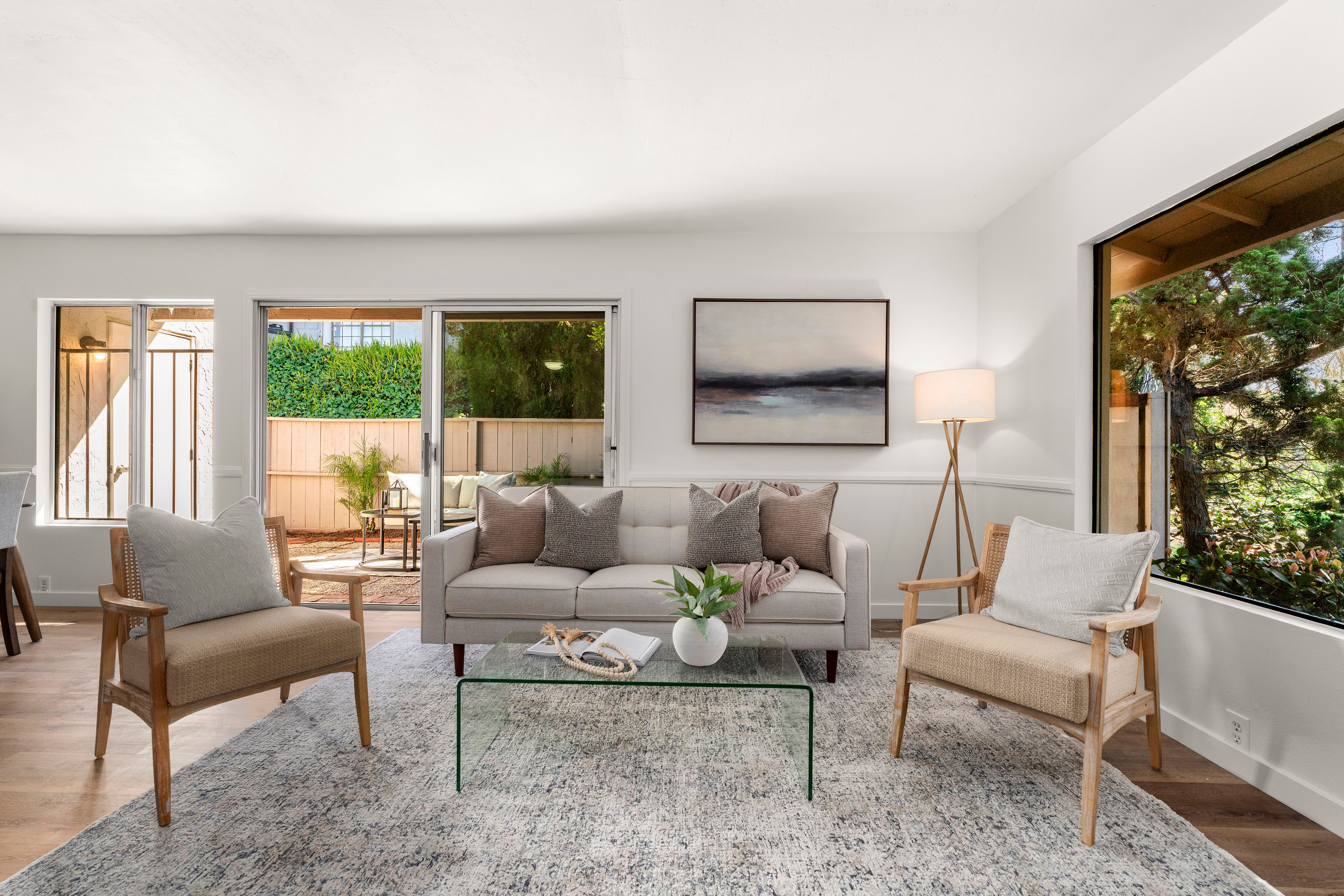 Welcome to this beautifully updated end-unit residence in the highly desirable Genesee Vista community of La Jolla. Thoughtfully renovated and move-in ready, this single-level home offers a bright, open-concept layout enhanced by abundant natural light and modern finishes throughout. The spacious living area opens seamlessly to a private enclosed patio with deck, an ideal extension of the home, perfect for relaxing evenings or effortless entertaining. New luxury vinyl plank flooring runs throughout, complementing the redesigned bathroom featuring a sleek contemporary vanity and updated finishes. The convenience of in-unit laundry adds to the home’s comfort and functionality. Ideally situated near UCSD, premier shopping, dining, and San Diego’s world-class beaches, this turnkey residence delivers the perfect balance of style, location, and low-maintenance La Jolla living.