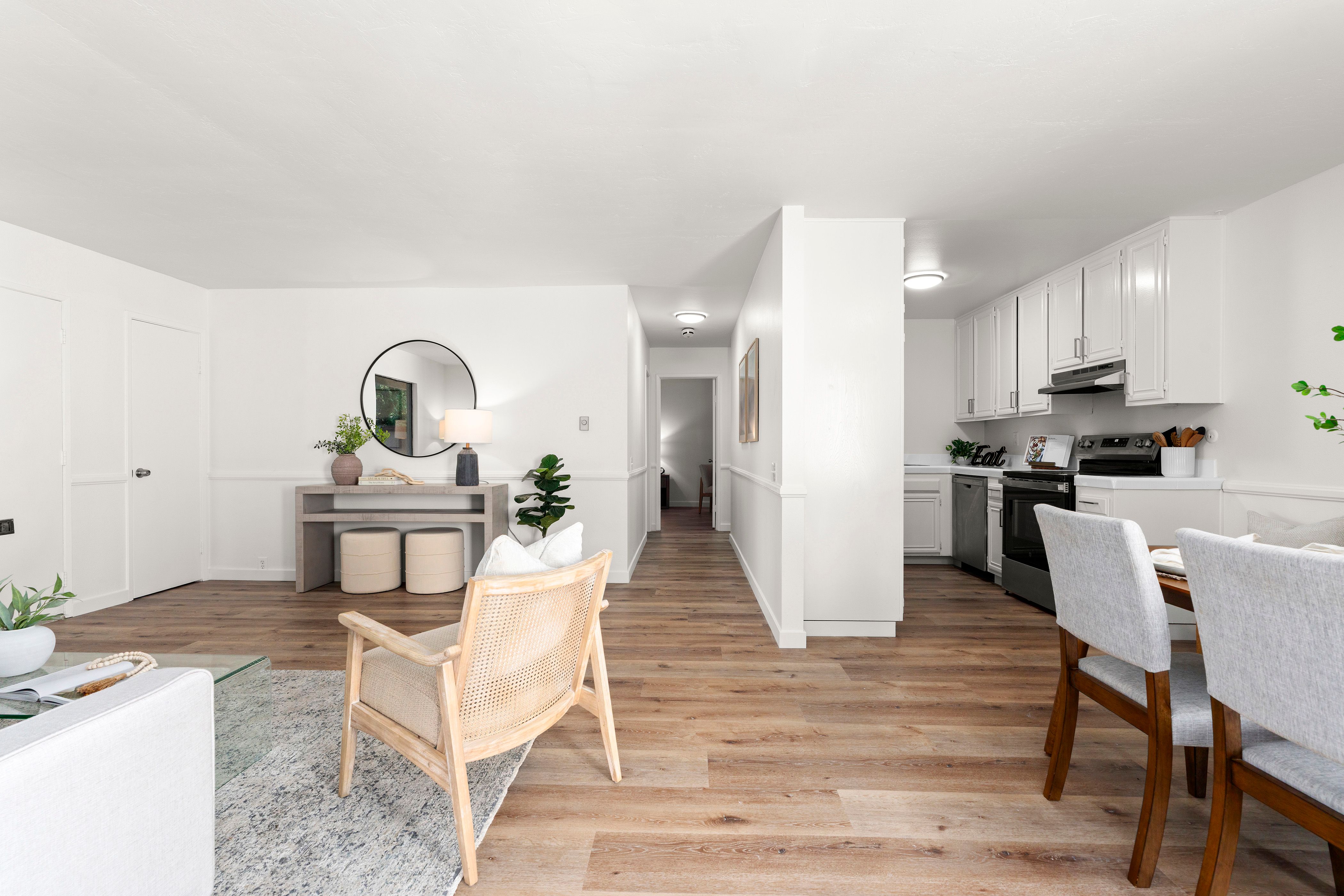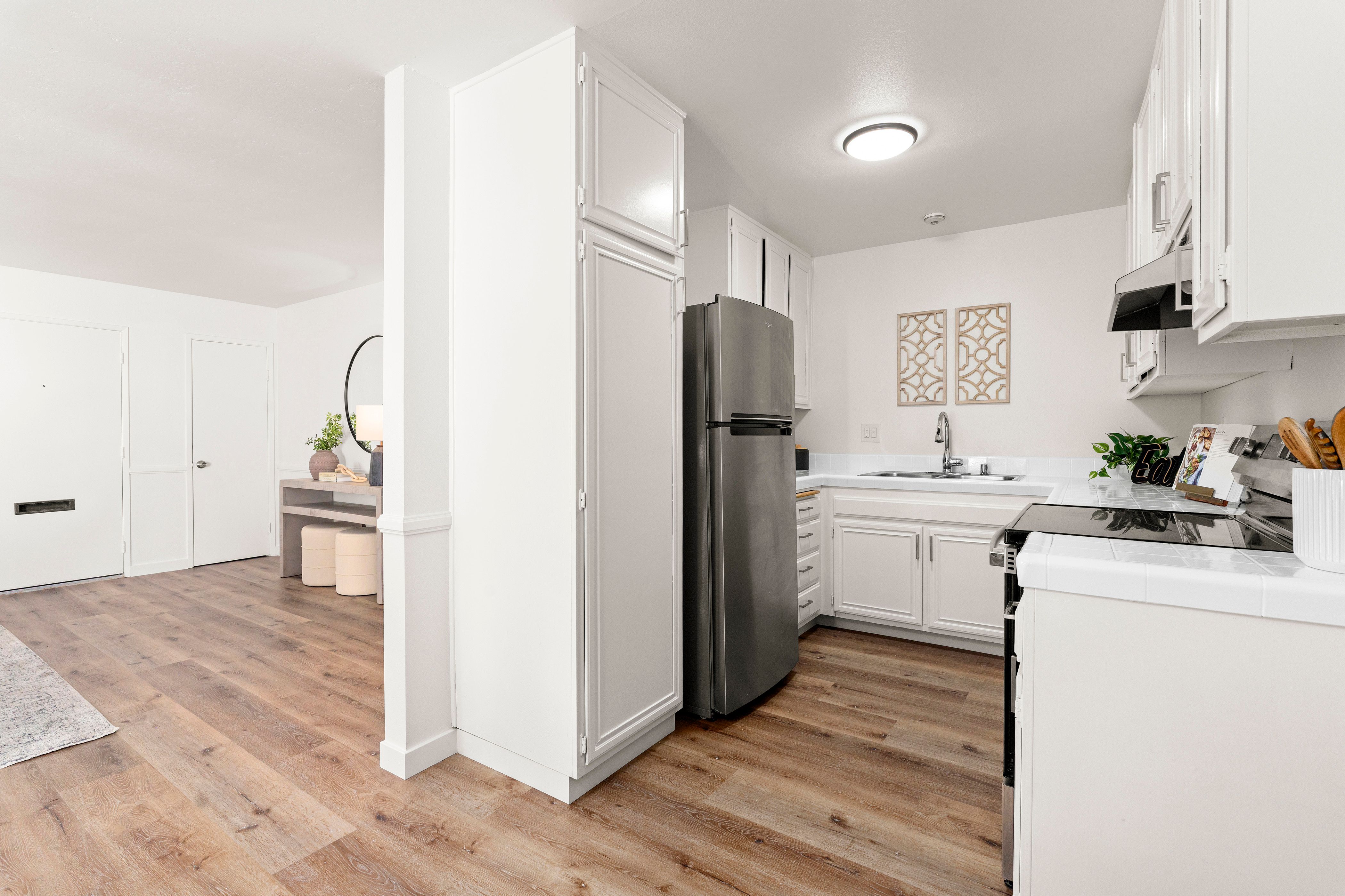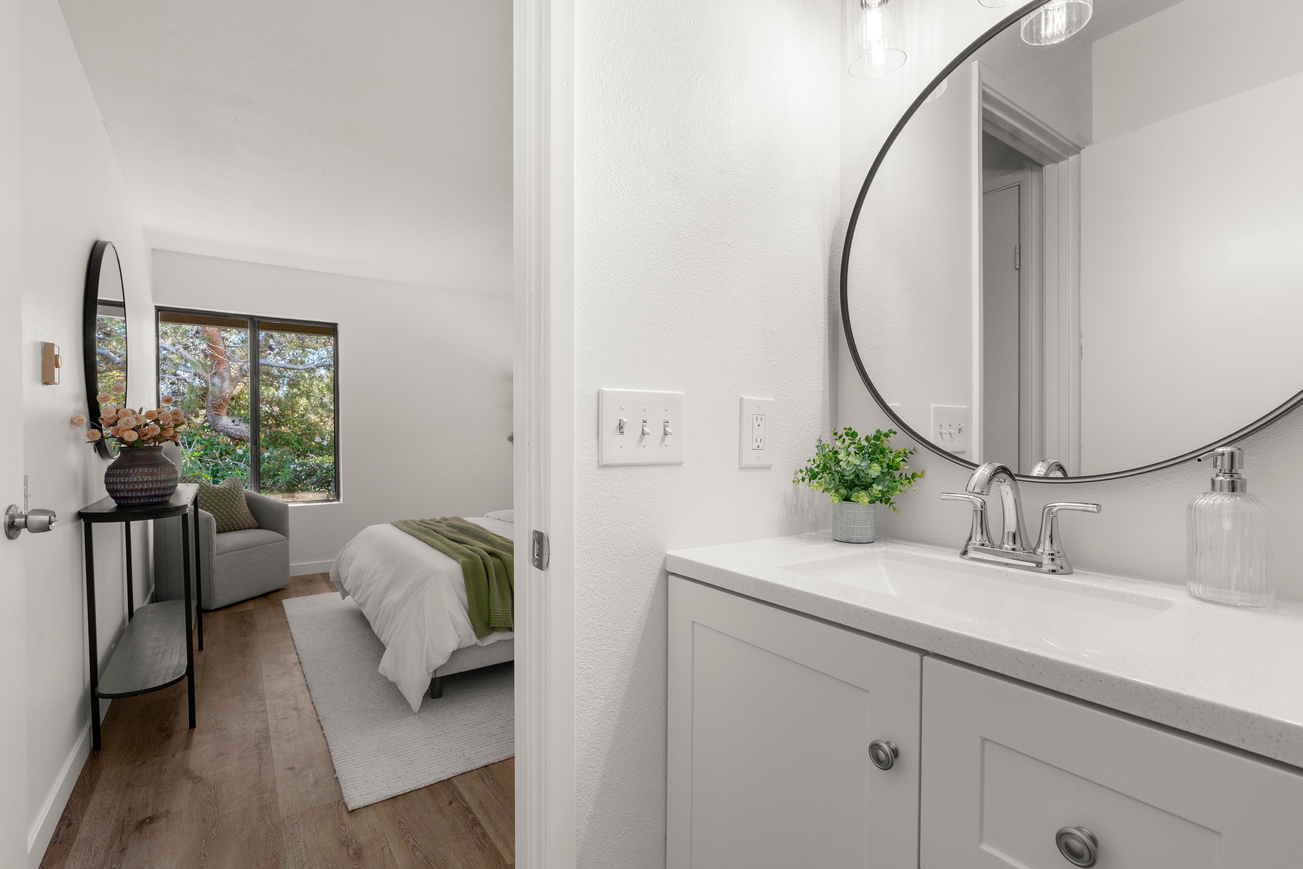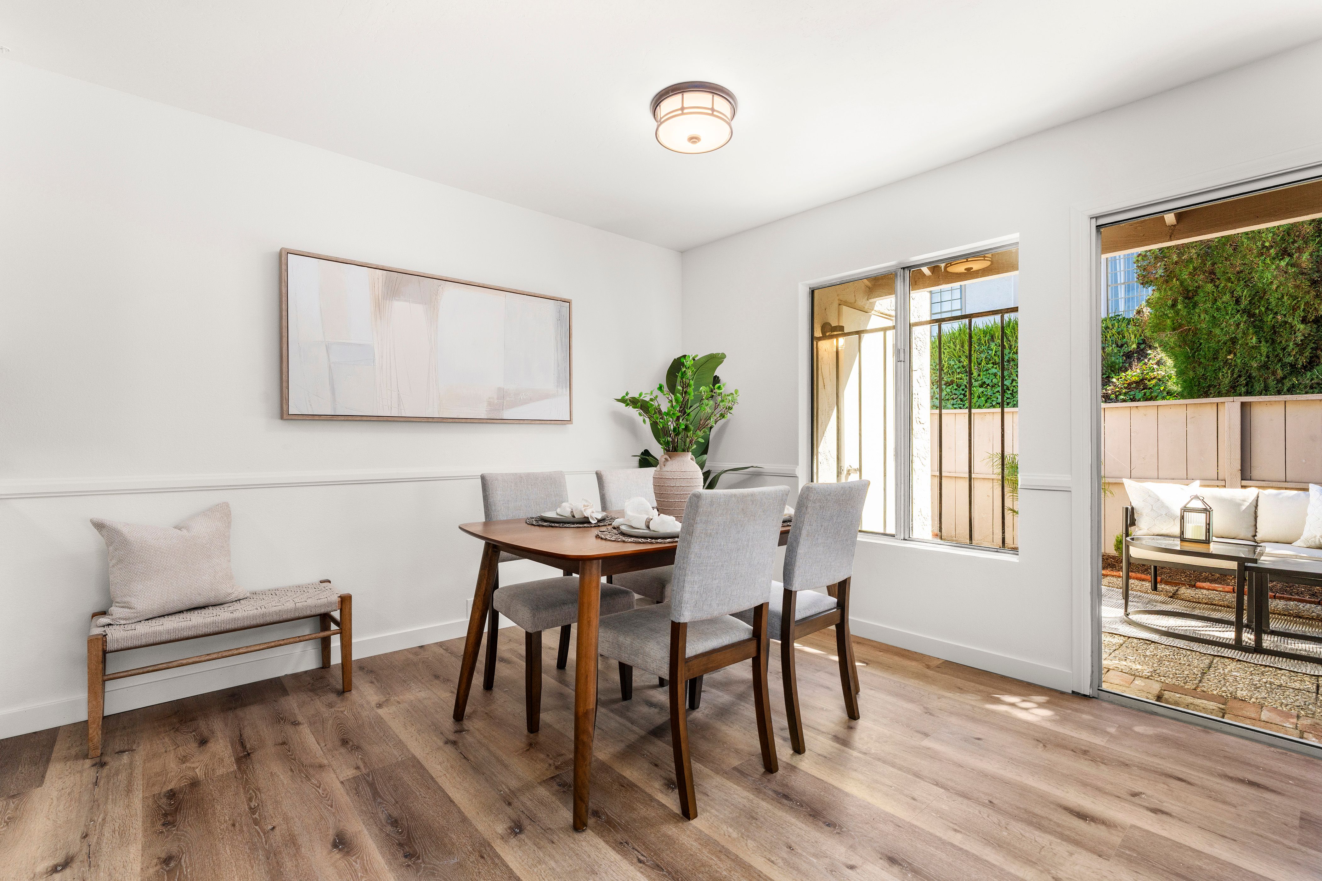 Welcome to this beautifully updated end-unit residence in the highly desirable Genesee Vista community of La Jolla. Thoughtfully renovated and move-in ready, this single-level home offers a bright, open-concept layout enhanced by abundant natural light and modern finishes throughout. The spacious living area opens seamlessly to a private enclosed patio with deck, an ideal extension of the home, perfect for relaxing evenings or effortless entertaining. New luxury vinyl plank flooring runs throughout, complementing the redesigned bathroom featuring a sleek contemporary vanity and updated finishes. The convenience of in-unit laundry adds to the home’s comfort and functionality. Ideally situated near UCSD, premier shopping, dining, and San Diego’s world-class beaches, this turnkey residence delivers the perfect balance of style, location, and low-maintenance La Jolla living.