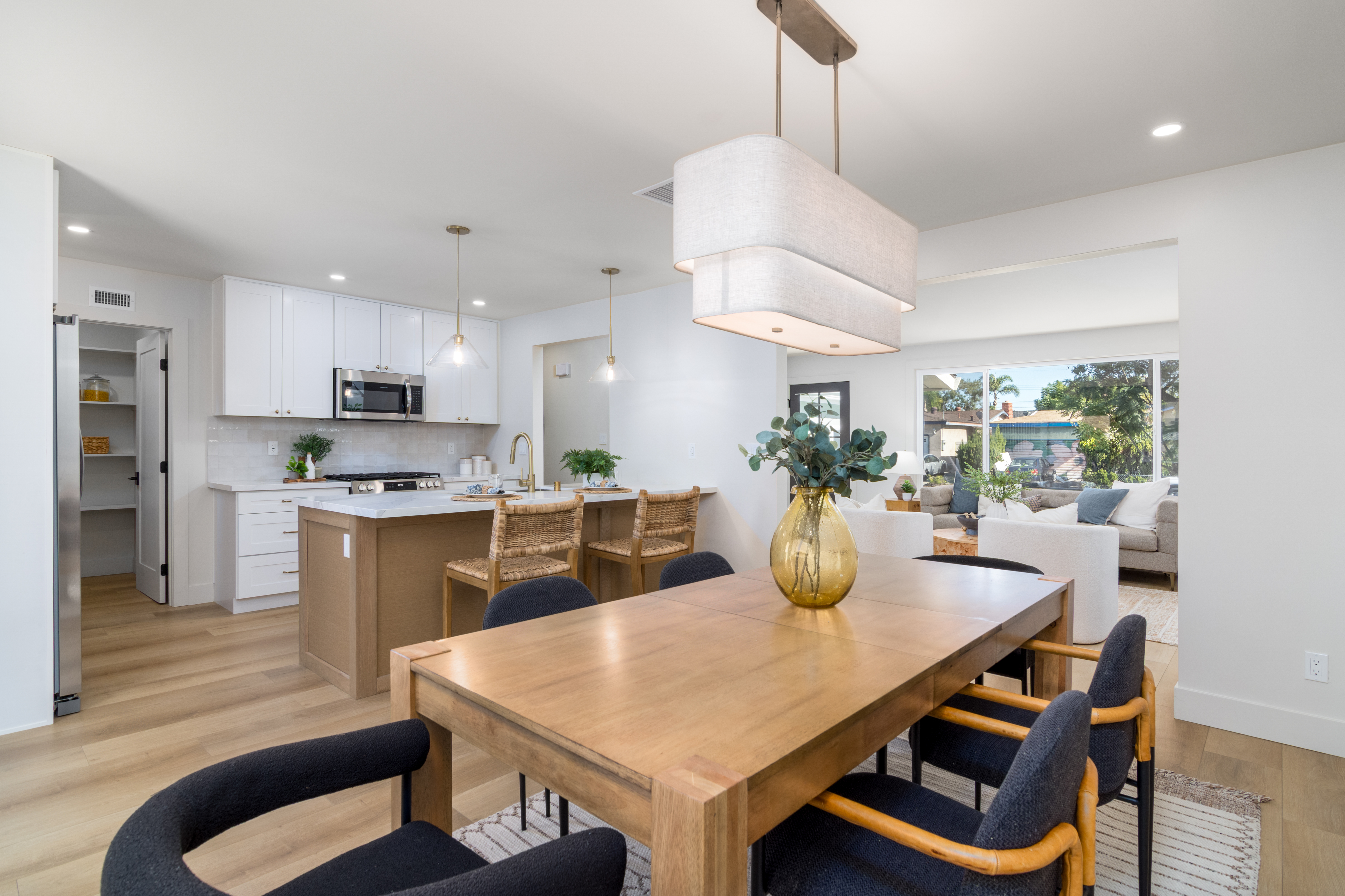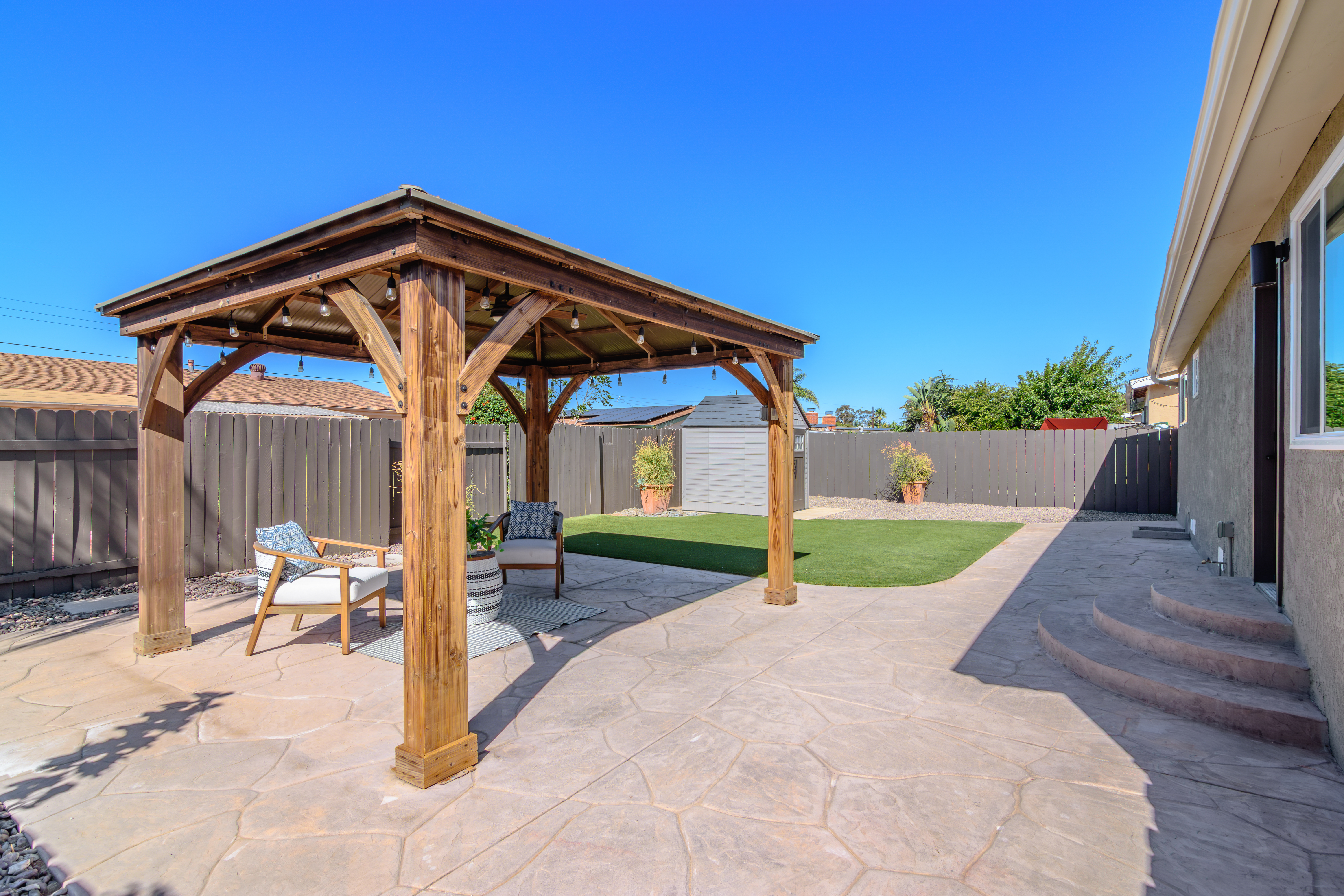 Experience modern living at its finest in this captivating, fully remodeled San Diego home where every detail reflects impeccable craftsmanship and design. From the beautifully landscaped yard to the open and airy layout, this home radiates warmth and sophistication. The light-filled living area flows seamlessly into a stunning chef's kitchen featuring shaker style cabinetry, quartz countertops, a kitchen peninsula, elegant fixtures, gleaming stainless-steel appliances, and a spacious walk-in pantry. The open-concept design extends to the inviting dining and family areas, creating a perfect setting for both entertaining and everyday comfort. The primary suite offers a tranquil escape with a spa-inspired bath featuring white oak vanity cabinets, designer finishes and a walk-in closet. Other bedrooms are bright and versatile, ideal for guests, a home office, or creative space. A convenient indoor laundry area adds to the home's practicality. Step outside to a beautifully landscaped backyard designed for relaxation and entertaining, complete with a covered wood-beam pergola, artificial turf, and a storage shed. A brand-new roof provides peace of mind for years to come. Located in the desirable Clairemont neighborhood, enjoy a short walk to the park, easy access to Tecolote Canyon trails, local parks, cafes, shopping, and major freeways connecting you to beaches, La Jolla, and Downtown within minutes. Discover luxurious, turn-key living in this impeccably upgraded home, schedule your private tour today and fall in love!