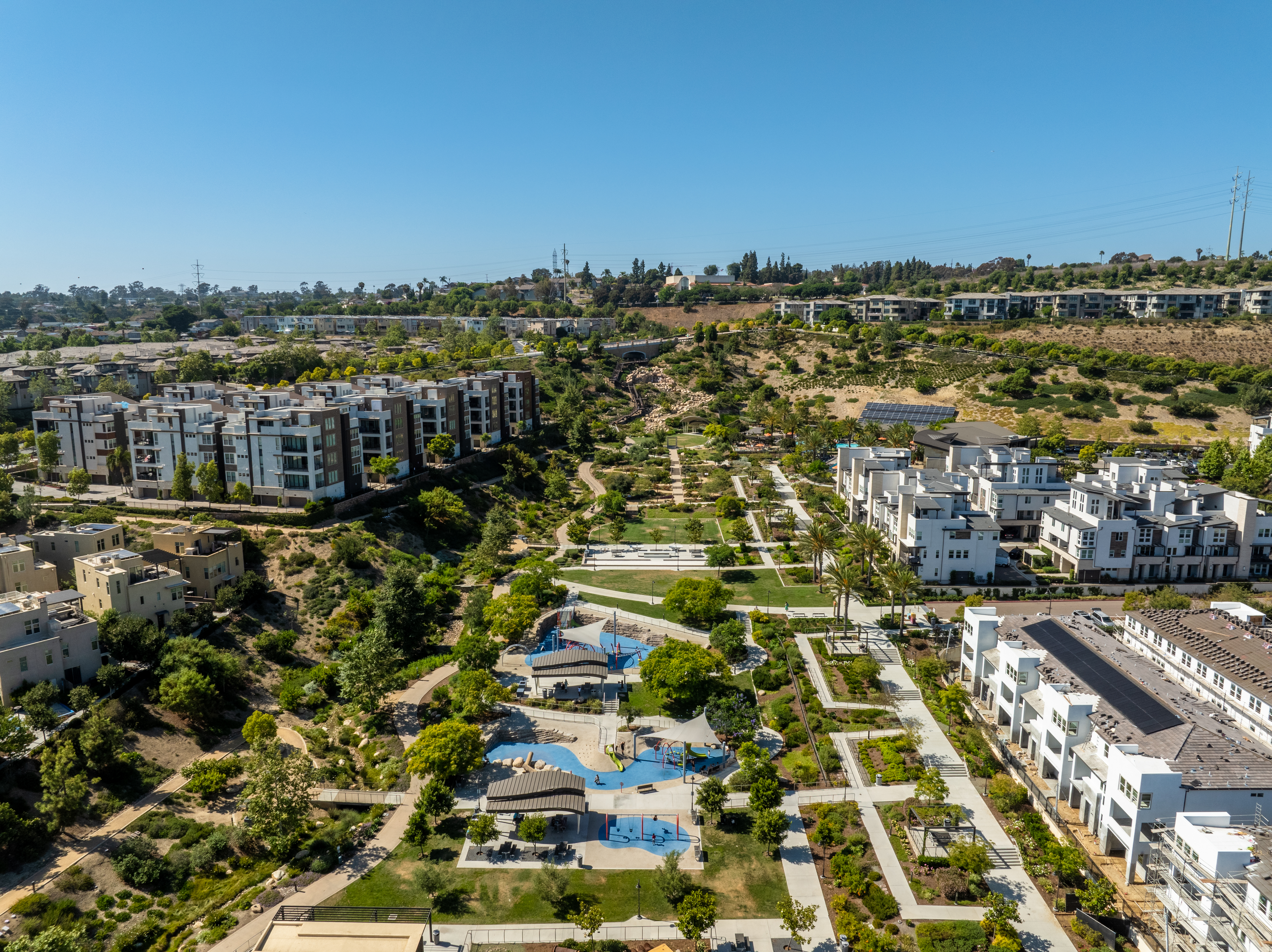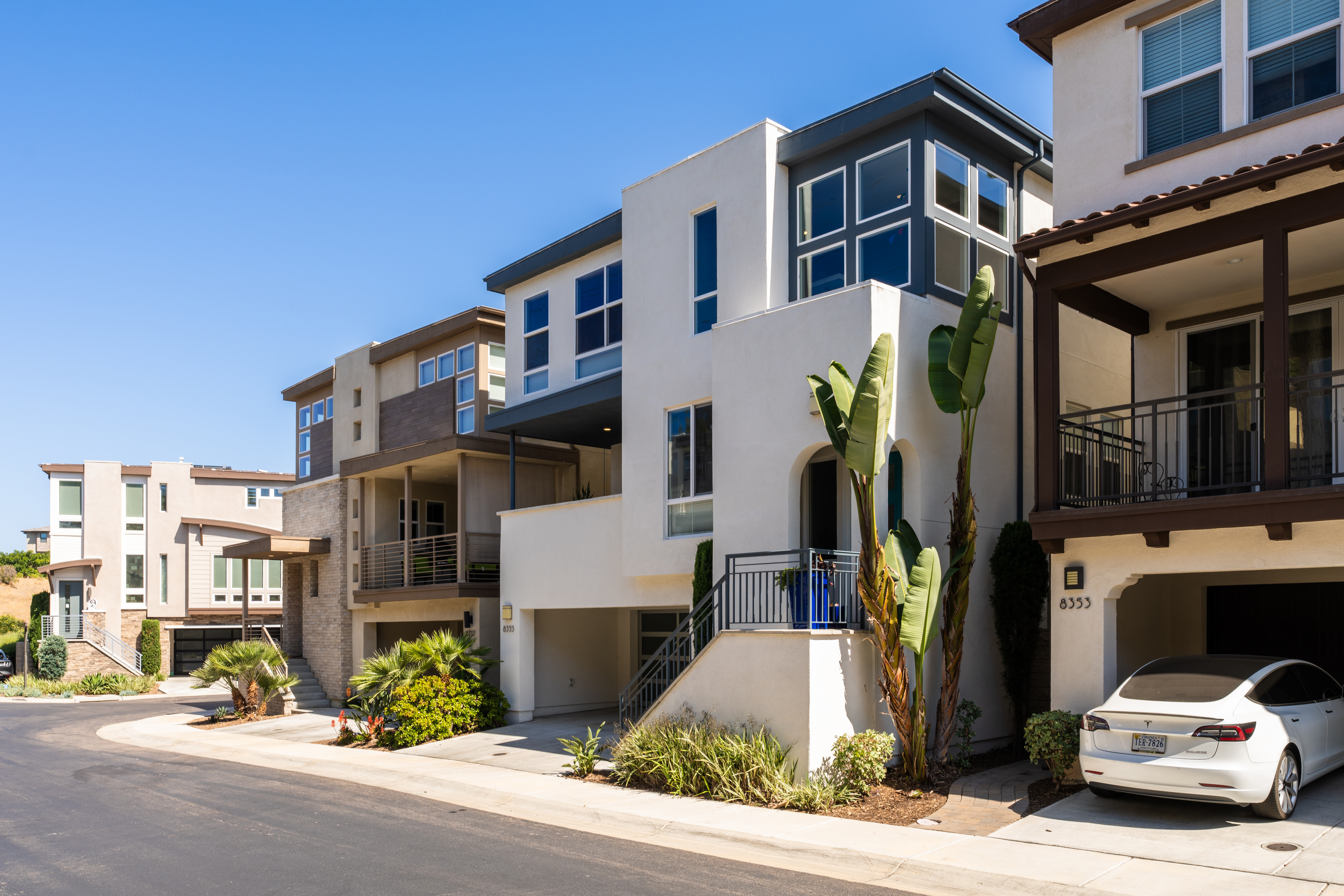 Welcome to 8355 Summit Way, a rare and refined residence in San Diego’s sought-after master-planned community of Civita, where urban living meets elevated design. Tucked away within APEX, an exclusive enclave of just 50 detached homes, this modern 3 bedroom + designated office room + flex space for extra sleeping/entertainment options, redefines what it means to live stylishly. Boasting 2,183 square feet of thoughtfully curated space across three levels, this home is a standout, featuring three full bathrooms, a convenient main-level powder room, a custom landscaped backyard, and a 2024 complete exterior renewal. The home is mostly solar-powered with home-battery and EV 220V outlet is move-in ready, offering the ideal blend of eco-conscious design and effortless luxury. Gain exclusive access to Civita’s private Recreation Center, which features two stunning resort style pools, central park, and dynamic lifestyle, within minutes of San Diego’s renowned shopping, dining, and beach destinations. Because your dream home should not share walls This is Apex living. Elevated. Rare. Yours.